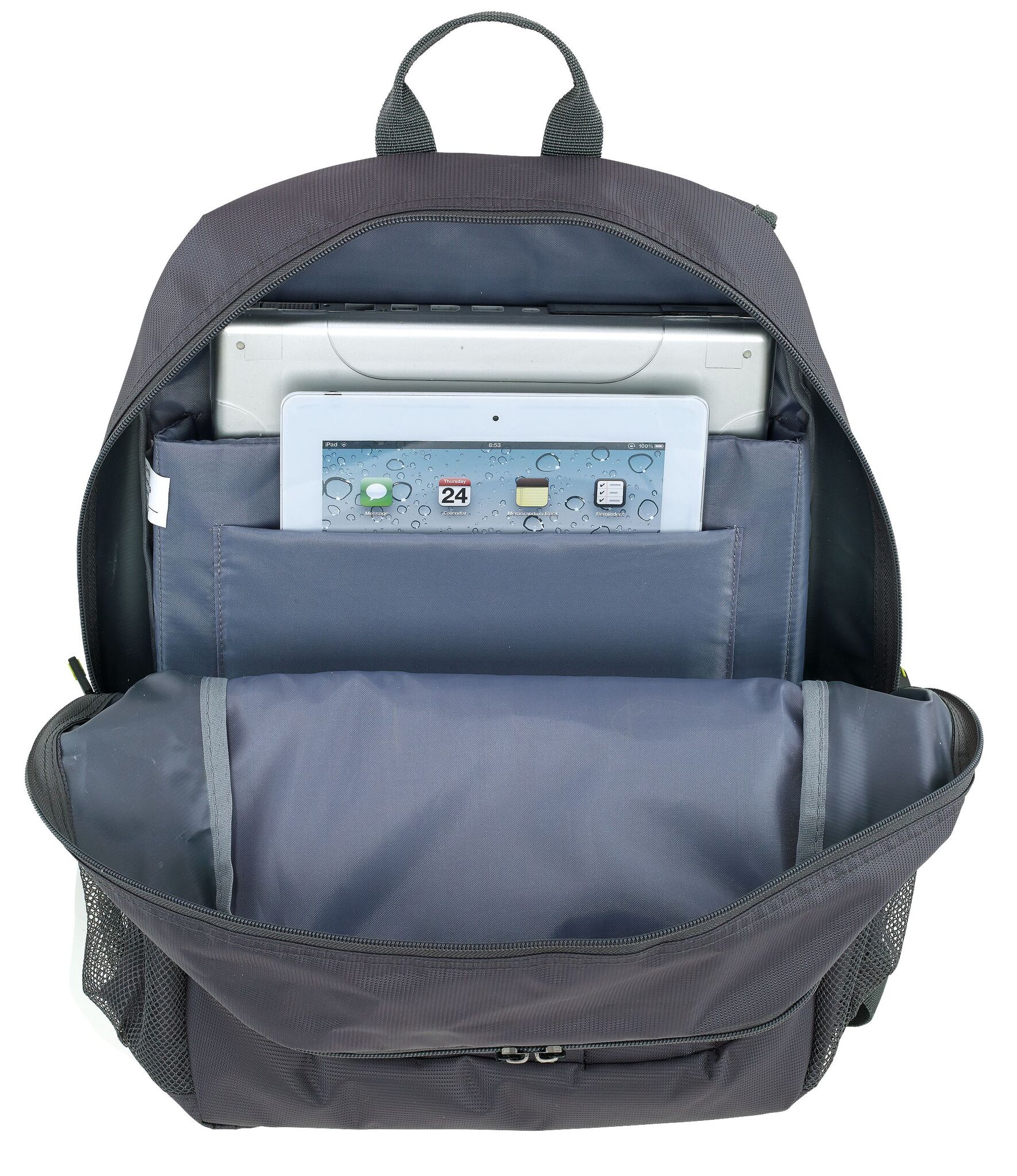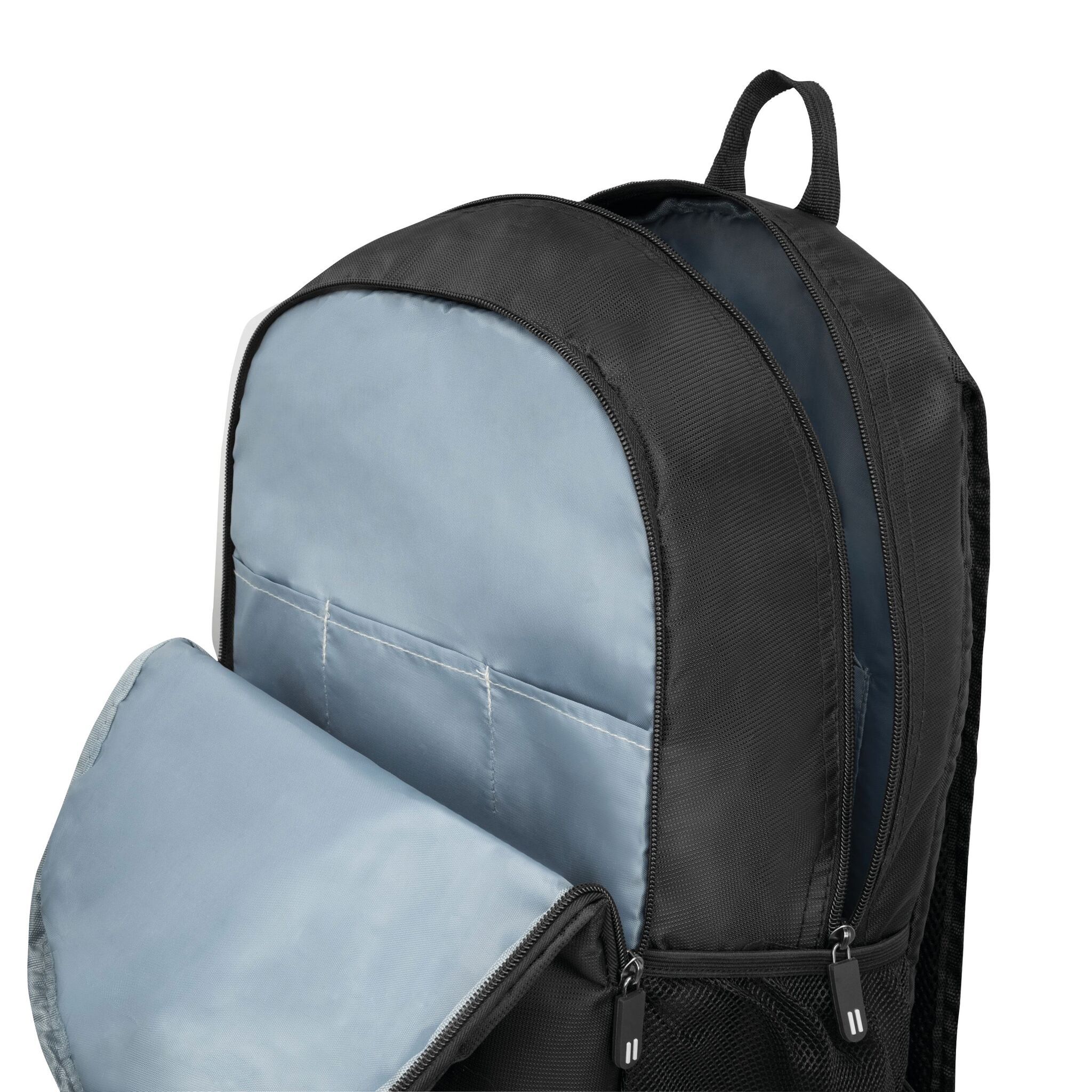 Рюкзак TALLINN 1 лицевой карман на молнии с органайзером внутри, маленький вертикальный карманчик спереди с цветной молнией, 1 основной отсек на молнии с мягким отделением для лаптопа или планшета внутри, с дополнительным выдвижным карманчиком, по бокам 2 сетчатых кармана, ручка для переноски, мягкие лямки и укрепленная спинка.