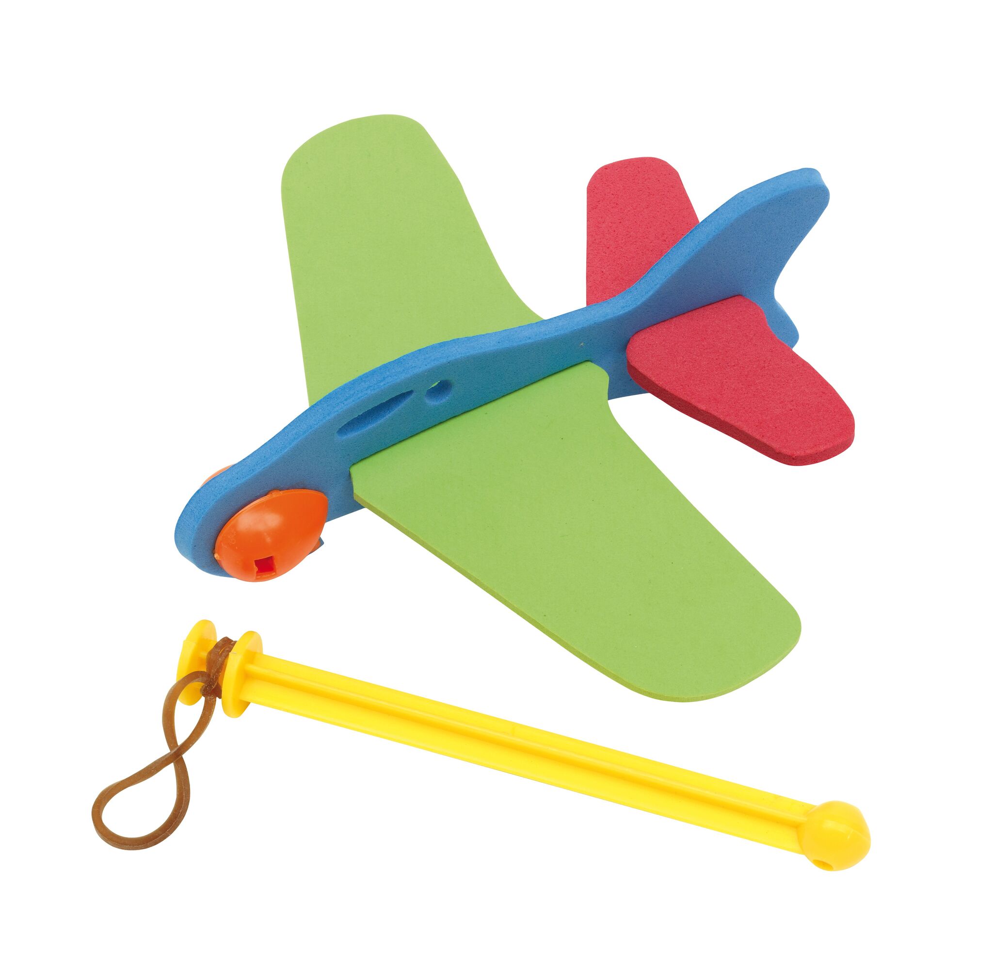Самолёт SKY HOPPER для сборки из 4 частей : состоит из пластикового пускового устройства с резиновой лентой, 3 части из пористой резины, упакован в мешок из ПВХ