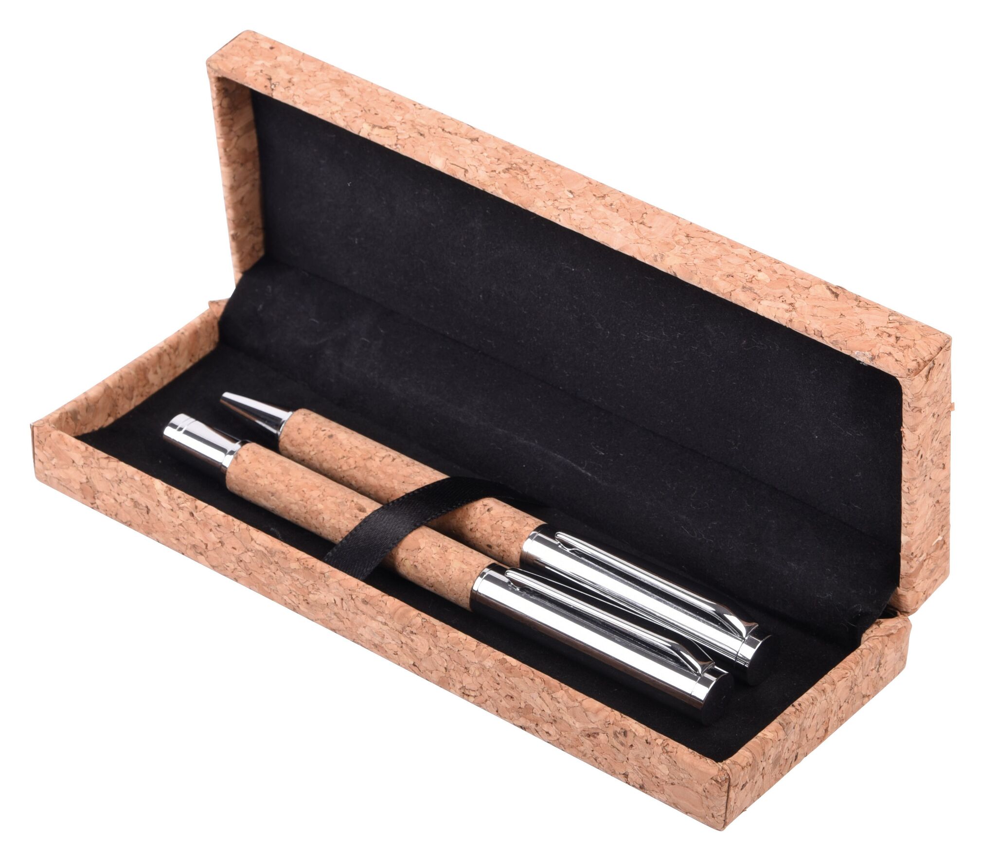 Schreibset CORK SIGNATURE : bestehend aus Металл-Drehkugelschreiber (с синей пастой) und Металл-Rollerball (с чёрной пастой) - Griffzone aus Пробка, Lieferung in edler Пробка-Geschenkbox