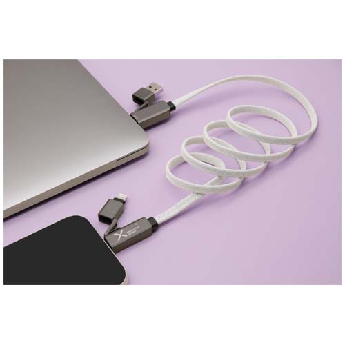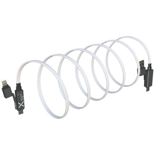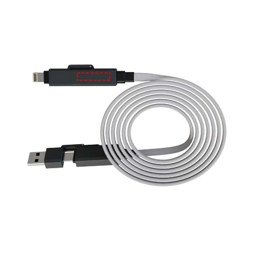 Сверхбыстрый магнитный зарядный кабель мощностью 60 Вт для смартфонов, планшетов и ноутбуков. Плоский кабель длиной 1 метр оснащен разъемами Type-C и Lightning, шнур изготовлен из переработанных пластиковых бутылок и оснащен прочными наконечниками из цинкового сплава. Благодаря двум входам — USB-A и USB-C — кабель обеспечивает 100% совместимость с новейшими моделями компьютеров. Полностью совместим с Apple CarPlay и Android Auto. Индивидуализация возможна с помощью лазерной гравировки на цинковой крышке. Поставляется с перерабатываемым чехлом из TPU и вкладышем, напечатанным на переработанной бумаге.
