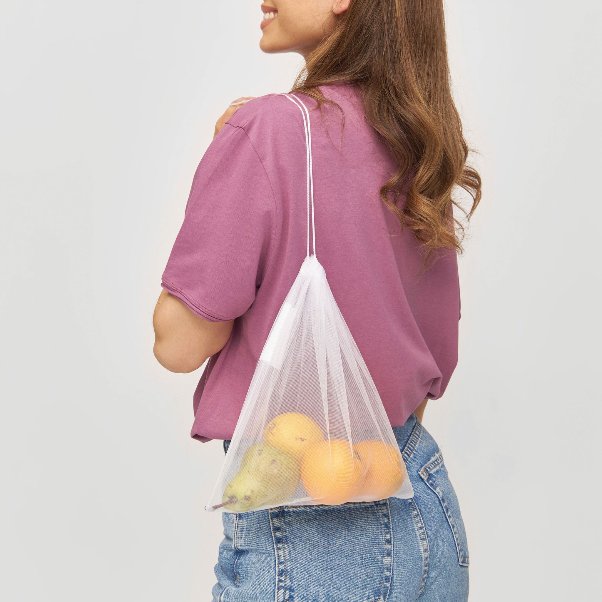 Сетчатый мешок для фруктов и овощей BLUE PLANET : изготовлен из переработанных материалов, закрывается стягивающим шнуром, можно стирать, многоразовый, с этикеткой для печати