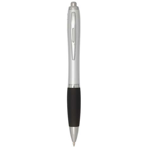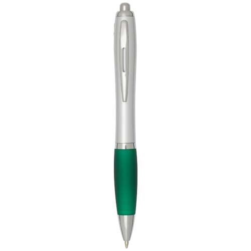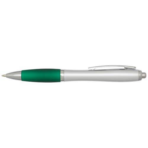 Шариковая ручка с нажимным механизмом Nash, изготовленная из переработанной пластмассы, имеет стильный изогнутый дизайн, серебристый корпус, серебристую отделку, и цветную рукоятку с мягким покрытием для комфортного письма. Изготовлена из переработанного ABS-пластика, сертифицированного RCS, что снижает потребность в материалах первичного изготовления не жертвуя износостойкостью. На обратной стороне изображен логотип rABS, подчеркивающий использование переработанных материалов. Цвет чернил: черный. Размер пера: 1,0 мм. Длина непрерывной линии: 1000 метров.