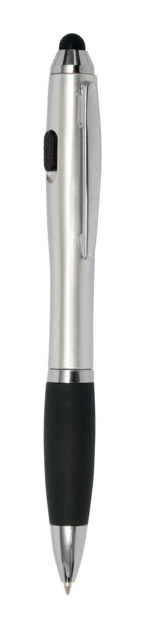 Шариковая ручка SWAY LUX с поворотным механизмом, белым светодиодом для освещения гравировки, выключателем подсветки LED, со стилусом для сенсорных экранов смартфонов и планшетов, синие чернила.