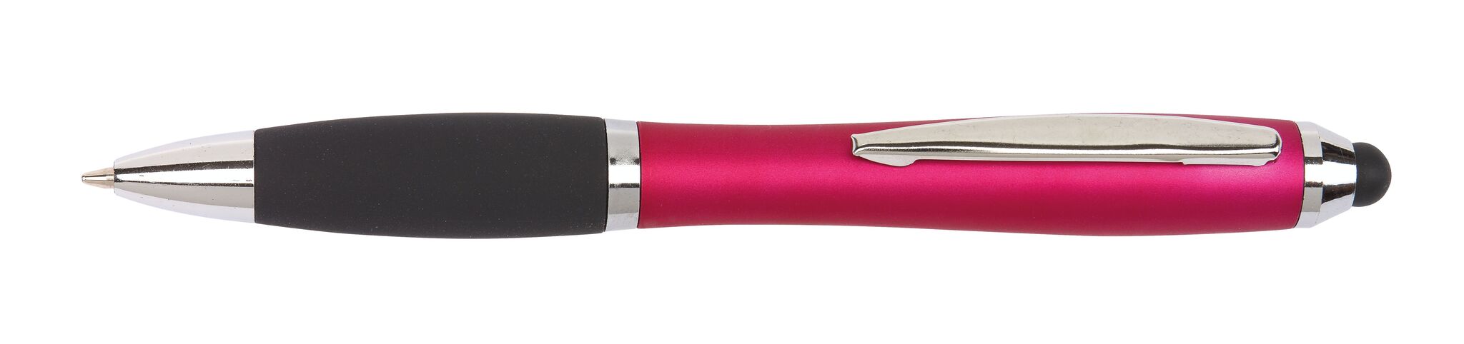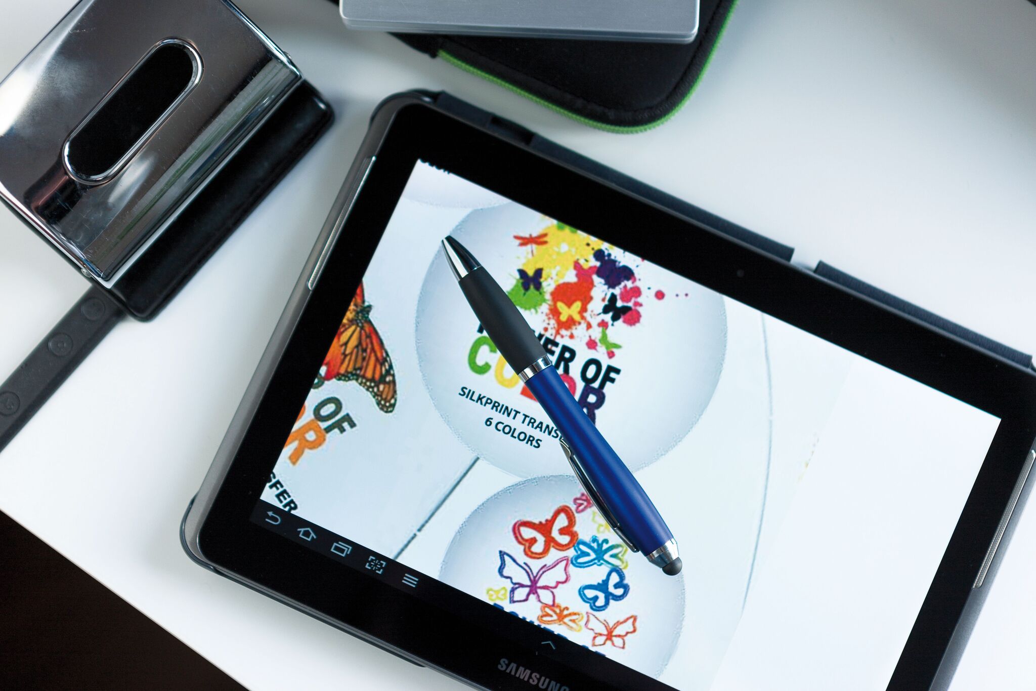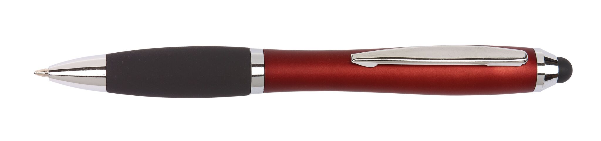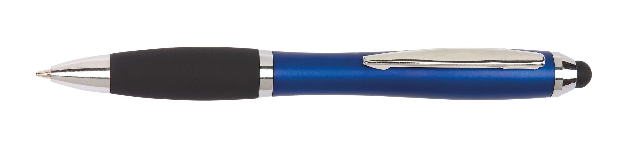 Шариковая ручка SWAY TOUCH с суженным корпусом, с поворотным механизмом, с резиновым покрытием поверхности корпуса и стилусом для сенсорного экрана на конце, синие чернила