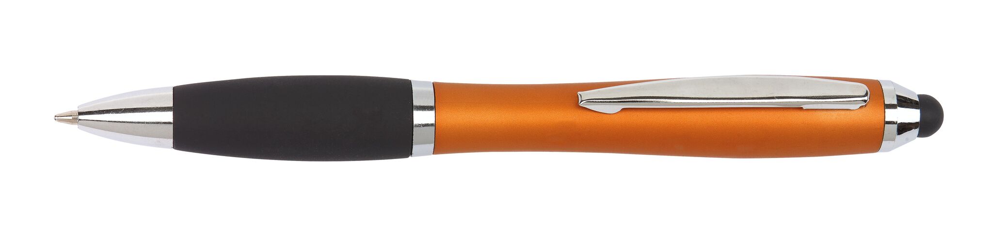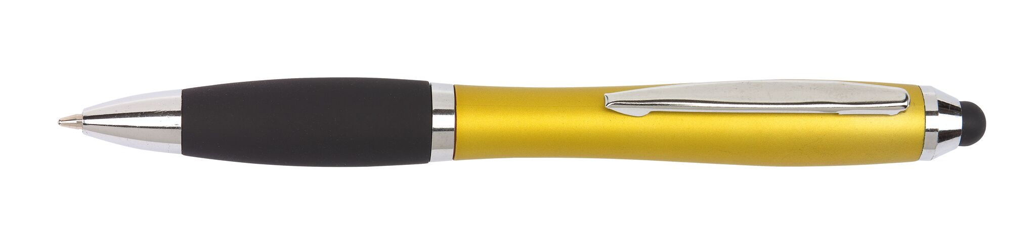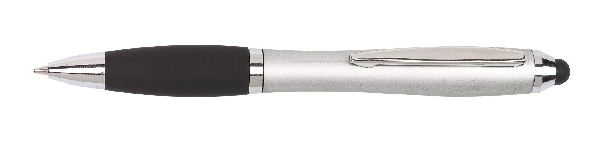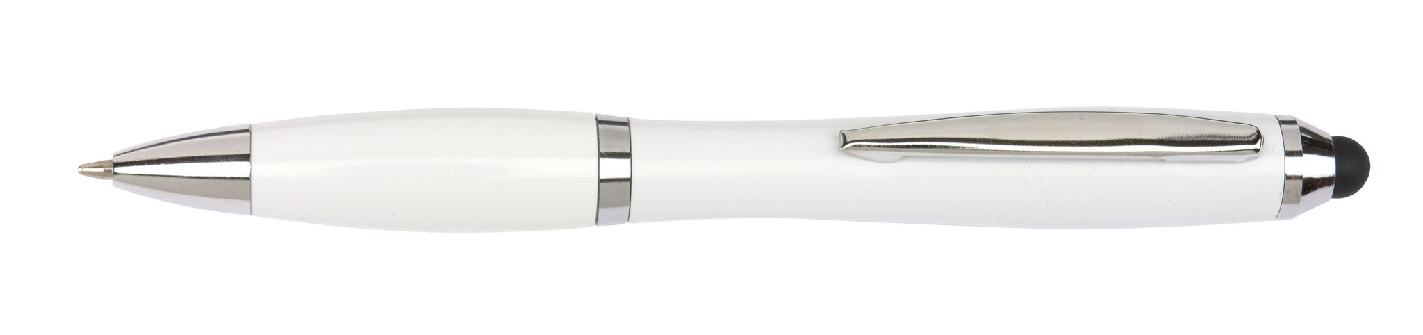Шариковая ручка SWAY TOUCH с суженным корпусом, с поворотным механизмом, с резиновым покрытием поверхности корпуса и стилусом для сенсорного экрана на конце, синие чернила