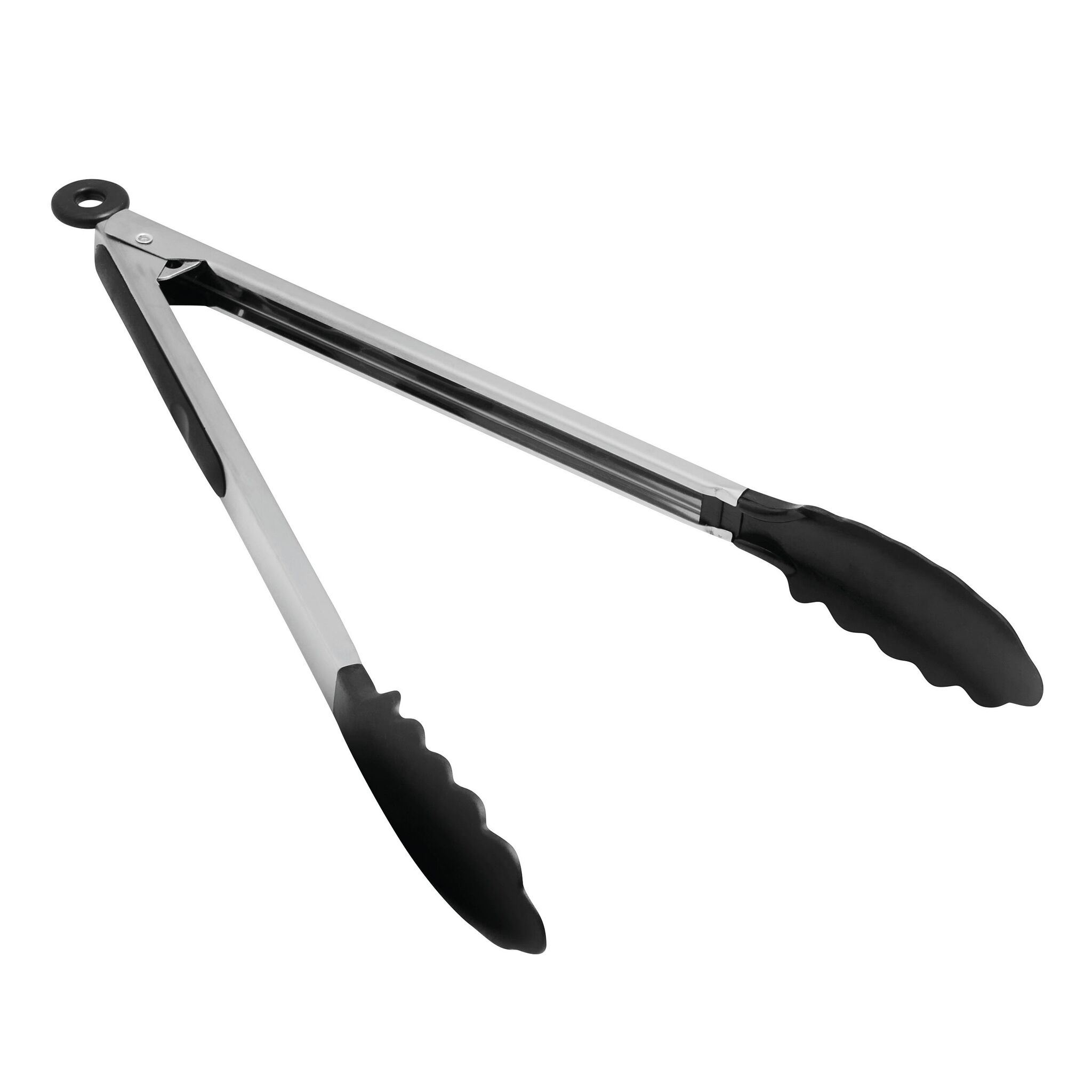 Шипцы из нержавеющей стали GRIP с пластиковой рукояткой, прорезиненной вешалкой в конце и запирающим механизмом для удобного хранения, идеально подходит для приготовления пищи, жарки, гриля и сервировки