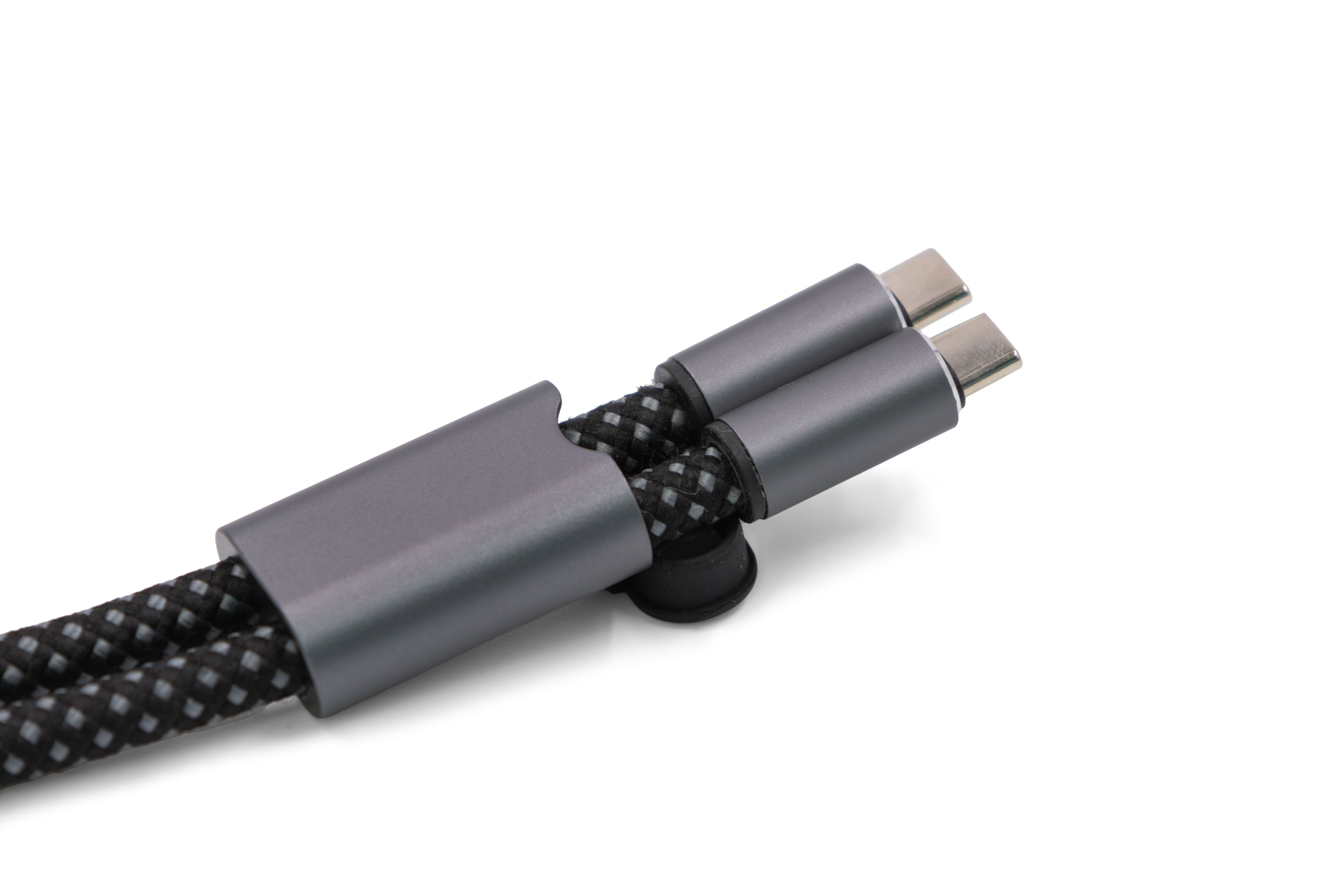 Зарядное устройство Lany Wristband Charge: Вход питания: Type-C, Выходная мощность: USB Type-C. Максимальная общая пропускная способность: 60 Вт, Элегантный цельный алюминиевый корпус, Длина кабеля 28 см, Кабель для передачи данных USB 2.0, Совместимо с большинством чехлов для телефонов, протестировано на вес до 8 кг, Подходит для зарядного кабеля, Шнур толщиной 7 мм изготовлен из переработанных ПЭТ-бутылок