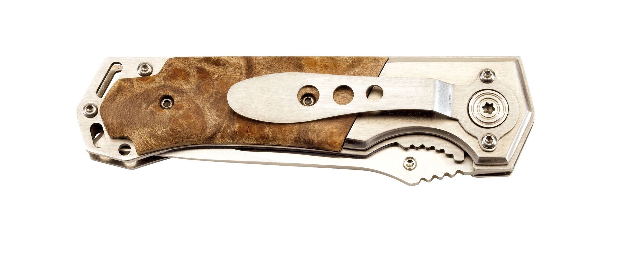 Складной нож HUNTER с широким лезвием, деревянной вставкой, в деревянном футляре
