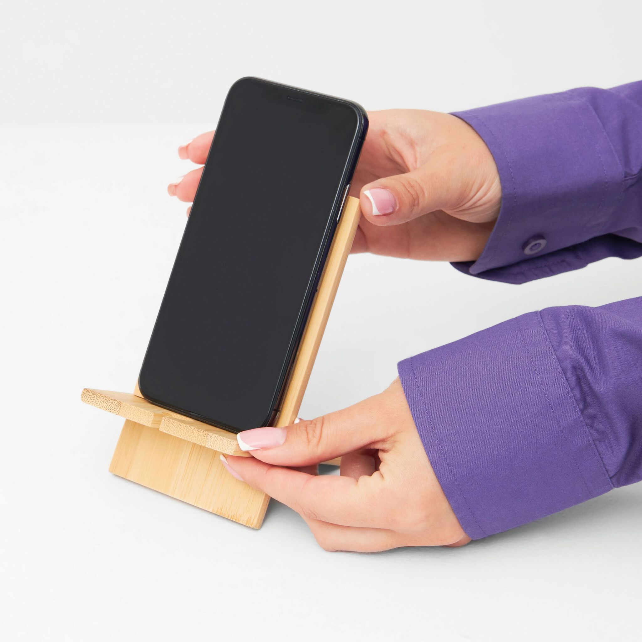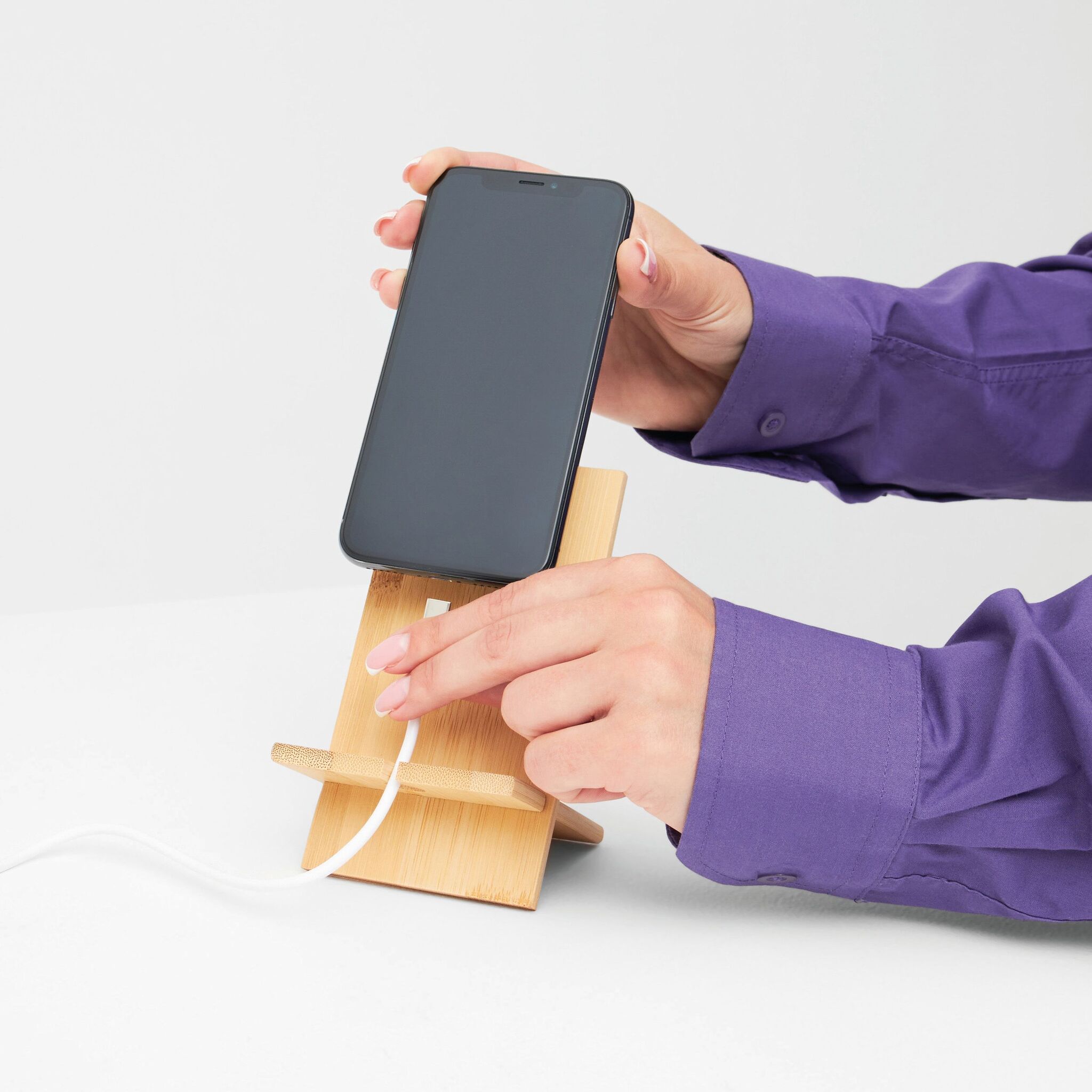 Smartphonehalter BAMBOO CHAIR : Durchführung für Ladekabel an der Unterseite