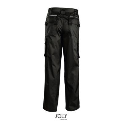РАБОЧИЕ БРЮКИ МУЖСКИЕ. 9 карманов; включая внутренний карман и карман для мобильного телефона; клапаны на карманах со светоотражающими лампасами; 2 вставки для ношения авторучек; застежка на молнии черного цвета; специальная этикетка для указания персональных данных, вышитая внутри