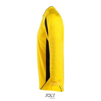 ДЕТСКАЯ ФУТБОЛКА ВРАТАРЯ. Рукав реглан.; Контрастные перфорированные вставки по бокам и на рукавах.; Длинный рукав с манжетами в резинку и налокотниками для защиты от ударов.; Удлиненная спинка с закруглением по низу.