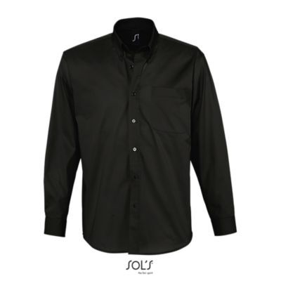 РУБАШКА МУЖСКАЯ ИЗ ХЛОПКОВОГО ТВИЛА С ДЛИННЫМ РУКАВОМ. Прямой крой; Длинный рукав; Классический воротник на 2 пуговицах; Регулируемые манжеты на пуговицах и разрез рукава "капуцин"; Планка с 7 пуговицами в цвет изделия; Нагрудный карман слева; 2 запасные пуговицы