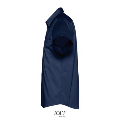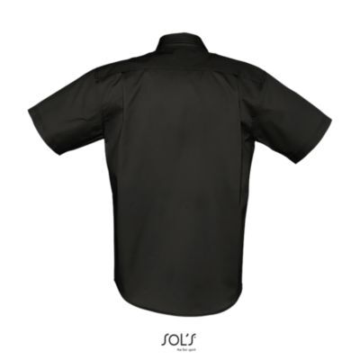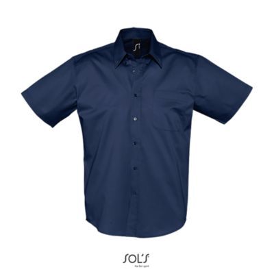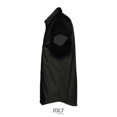 РУБАШКА МУЖСКАЯ ИЗ ХЛОПКОВОГО ТВИЛА С КОРОТКИМ РУКАВОМ. Прямой крой; Короткий рукав; Классический воротник на 2 пуговицах; Планка с 7 пуговицами в цвет изделия; Нагрудный карман слева; 2 запасные пуговицы