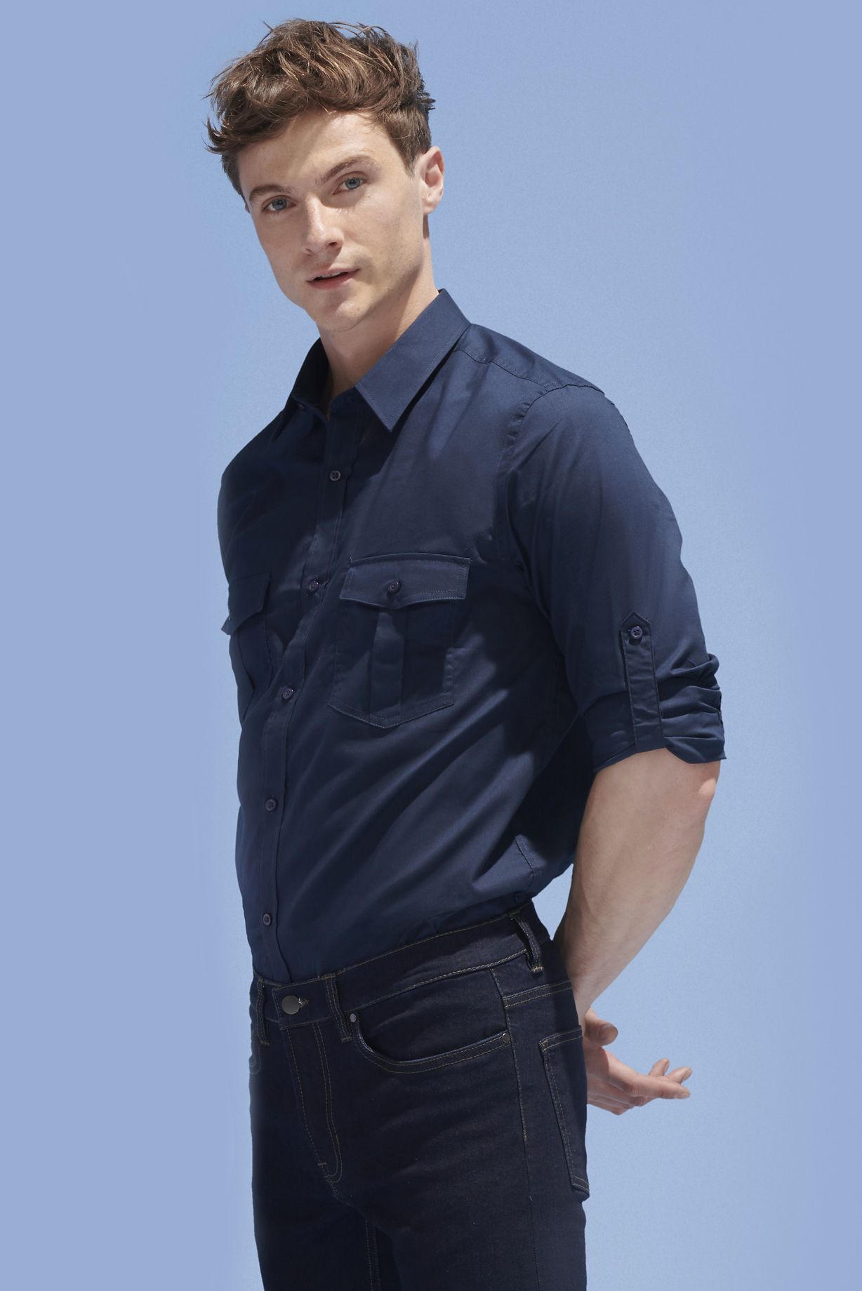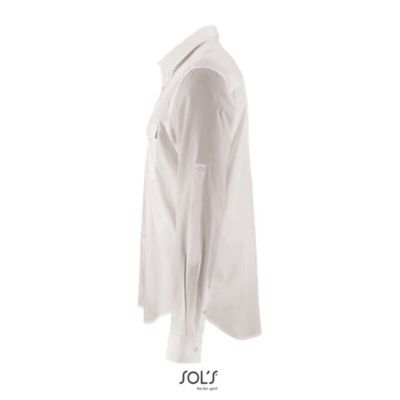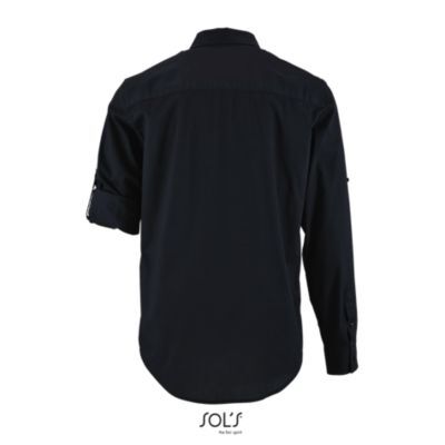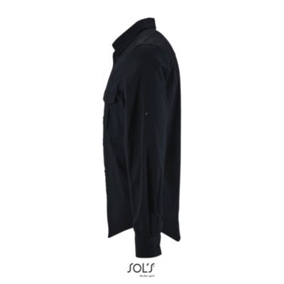 МУЖСКАЯ РУБАШКА. Прямой крой; Длинный рукав; Прямые манжеты на 1 пуговице; Застегивающийся на пуговицу разрез рукава "капуцин"; Планка с 7 пуговицами; Пата для регулировки длины рукава; 2 нагрудных кармана с клапаном на пуговице