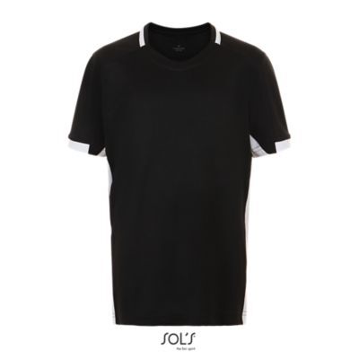 КОНТРАСТНАЯ ФУТБОЛКА ДЛЯ ДЕТЕЙ. V-образный вырез с контрастной отделкой; Контрастные сетчатые вставки по бокам