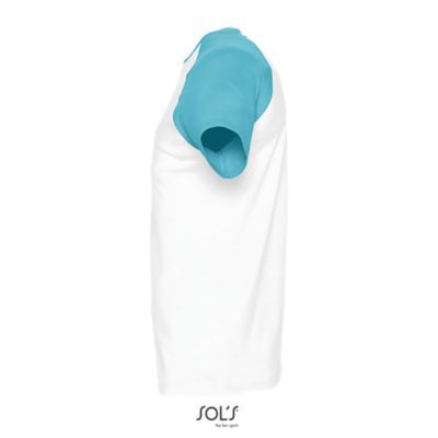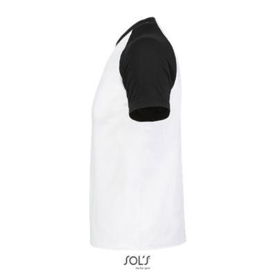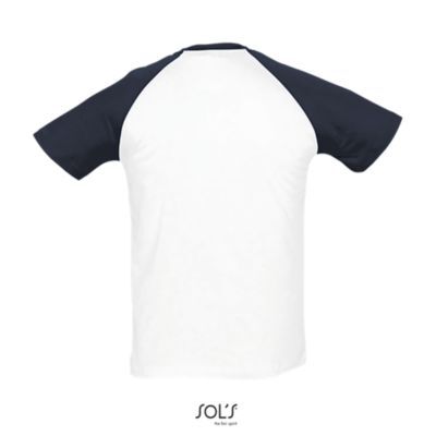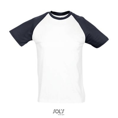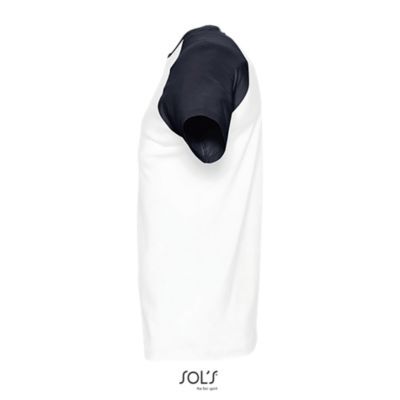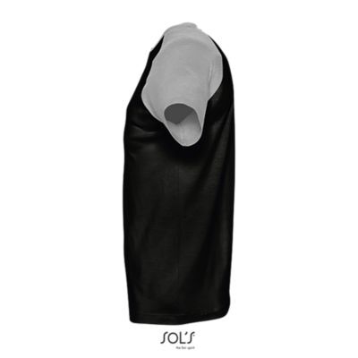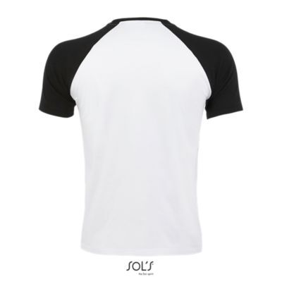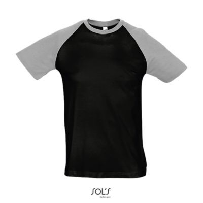 ФУТБОЛКА МУЖСКАЯ ДВУХЦВЕТНАЯ С РУКАВОМ РЕГЛАН. укрепляющая тесьма по вороту; край воротника связан резинкой с эластаном; Рукав реглан; изделие выкроено из трикотажного полотна; без боковых швов.