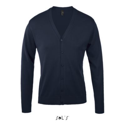 МУЖСКОЙ КАРДИГАН НА ПУГОВИЦАХ, ТРИКОТАЖНАЯ V-ОБРАЗНАЯ ГОРЛОВИНА. Манжеты рукавов и низ изделия из резинки 1х1 с эластаном, для большей эластичности.; Планка с пуговицами из трикотажа. Пуговицы тон в тон.; Крой рукавов "fully fashion".; Запасная пуговица на внутренней боковой стороне изделия.; Традиционный крой.