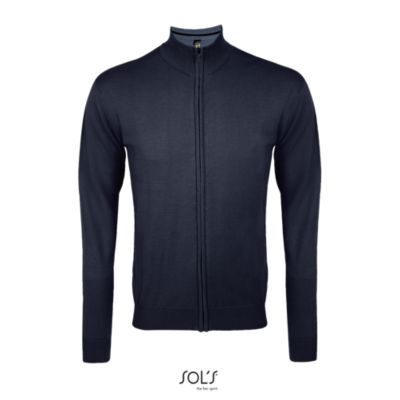 МУЖСКОЙ СВИТЕР НА МОЛНИИ. Втачные рукава; Высокий воротник из ребра 1x1, внутри контрастная трикотажная полоса; Манжеты и пояс из эластана 1x1 для большего комфорта; Застежка на потайную молнию спереди; Полностью обработанные проймы; Прямой крой