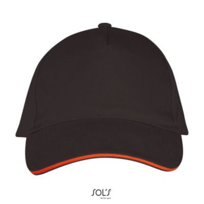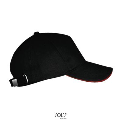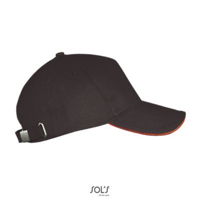 БЕЙСБОЛКА ИЗ 5 КЛИНЬЕВ. 5 клиньями; жесткий козырек "сэндвич"; 4 вышитых отверстия для вентиляции; регулируемая металлическая застежка