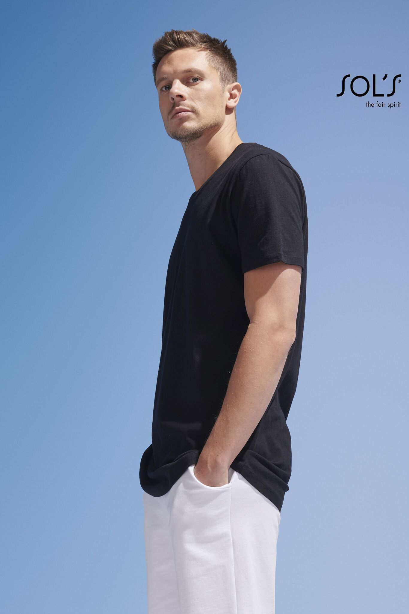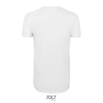 УДЛИНЕННАЯ МУЖСКАЯ ФУТБОЛКА. Круглый вырез; Кроеный трикотаж; Удлиненная модель; Закругленный низ; Укрепляющая тесьма по вороту