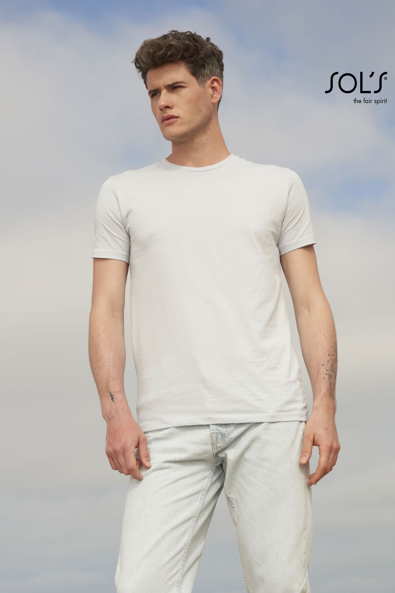 МУЖСКАЯ ОБЛЕГАЮЩАЯ ФУТБОЛКА ИЗ ДЖЕРСИ С КРУГЛЫМ ВЫРЕЗОМ. Ребристый круглый вырез; Укрепляющая тесьма по вороту; Облегающая модель; Кроеный трикотаж