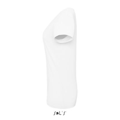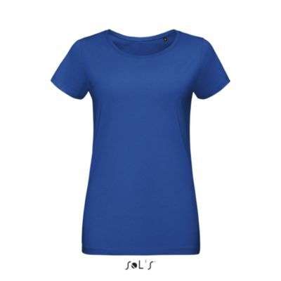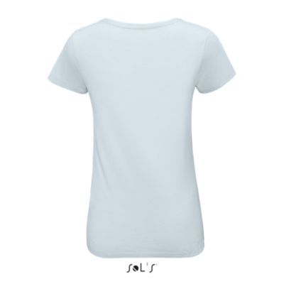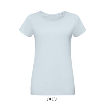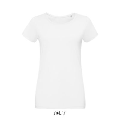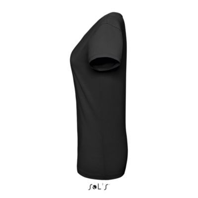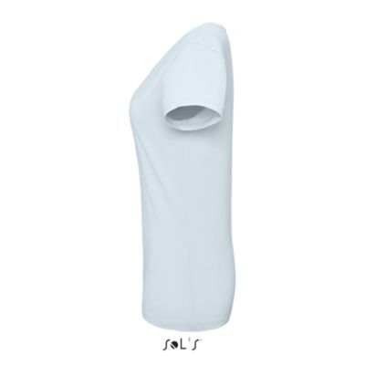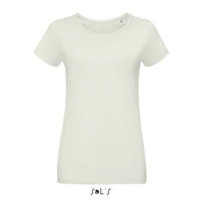 ЖЕНСКАЯ ОБЛЕГАЮЩАЯ ФУТБОЛКА ИЗ ДЖЕРСИ С КРУГЛЫМ ВЫРЕЗОМ. Ребристый круглый вырез; Укрепляющая тесьма по вороту; Облегающая модель; Кроеный трикотаж
