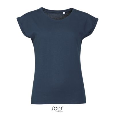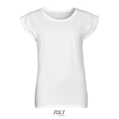 ЖЕНСКАЯ ФУТБОЛКА С КРУГЛЫМ ВОРОТОМ. Укрепляющая тесьма по вороту; Круглый ворот; Без швов на проймах рукавов; Лацканы внизу рукавов; Сшито из кроеного полотна