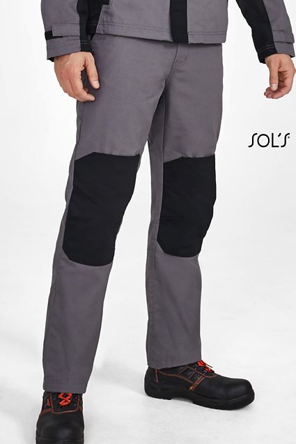 МУЖСКИЕ ДВУХЦВЕТНЫЕ РАБОЧИЕ БРЮКИ. Застежка-молния; Петли для ремня; Полуэластичная талия; Место для съемных коленных накладок; 6 карманов (включая 1 боковой карман для инструментов - 2 задних кармана); Пресс-шпильки; Тканый внутренний идентификационный ярлык