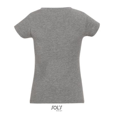 ФУТБОЛКА ЖЕНСКАЯ С V-ОБРАЗНЫМ ВЫРЕЗОМ. Усиливающая лента на шее; Короткие рукава; Приталенный крой; V-образный вырез с ребристыми краями; Покрой и пошив