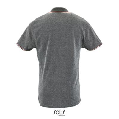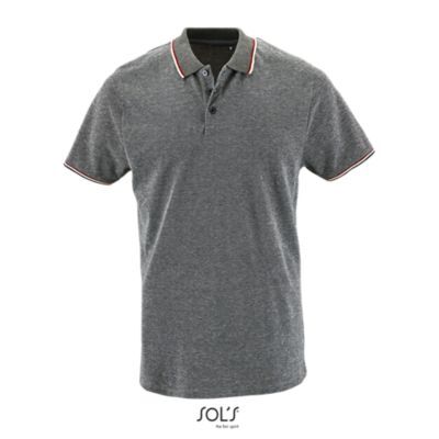 МУЖСКАЯ МЕЛАНЖЕВАЯ РУБАШКА ПОЛО. Короткий рукав; Планка с 3 пуговицами; Кроеный трикотаж; Воротник и края рукавов из резинки в контрастную полоску