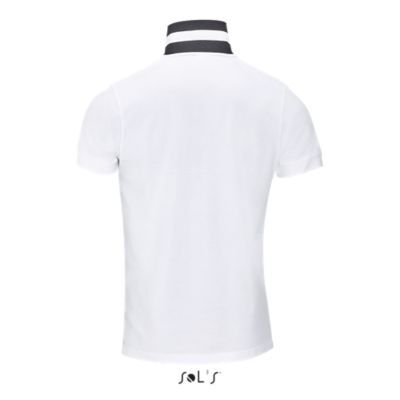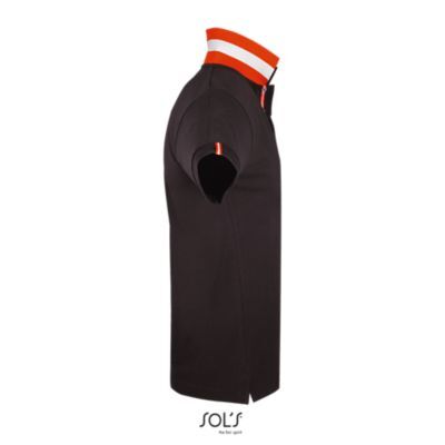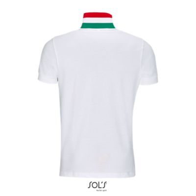 МУЖСКАЯ РУБАШКА ПОЛО С КОРОТКИМ РУКАВОМ. воротник и нижние края рукавов в резинку;; укрепляющая тесьма по вороту.; Kонтрастная обратная сторона воротника.; Усиленная планка с 2 белыми перламутровыми пуговицами.; Тонкая контрастная полоска на внутренней тесьме по вороту и на планке с пуговицами;; маленькая декоративная двуцветная вставка на внешней стороне рукава и на боковых разрезах по низу изделия.; Изделие выкроено из трикотажного полотна.; Приталенная модель.; Запасная пуговица на внутренней боковой строчке изделия.
