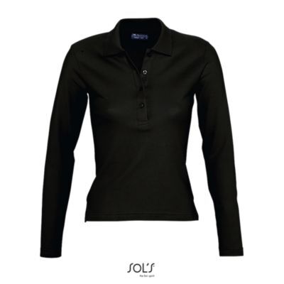 РУБАШКА ПОЛО ЖЕНСКАЯ С ДЛИННЫМ РУКАВОМ. Ребристый воротник; Подкладка на воротнике; Длинные рукава; Воротник-стойка с 4 пуговицами и пуговицами тон в тон; Зауженный крой; Боковые разрезы; Вшитый разрез