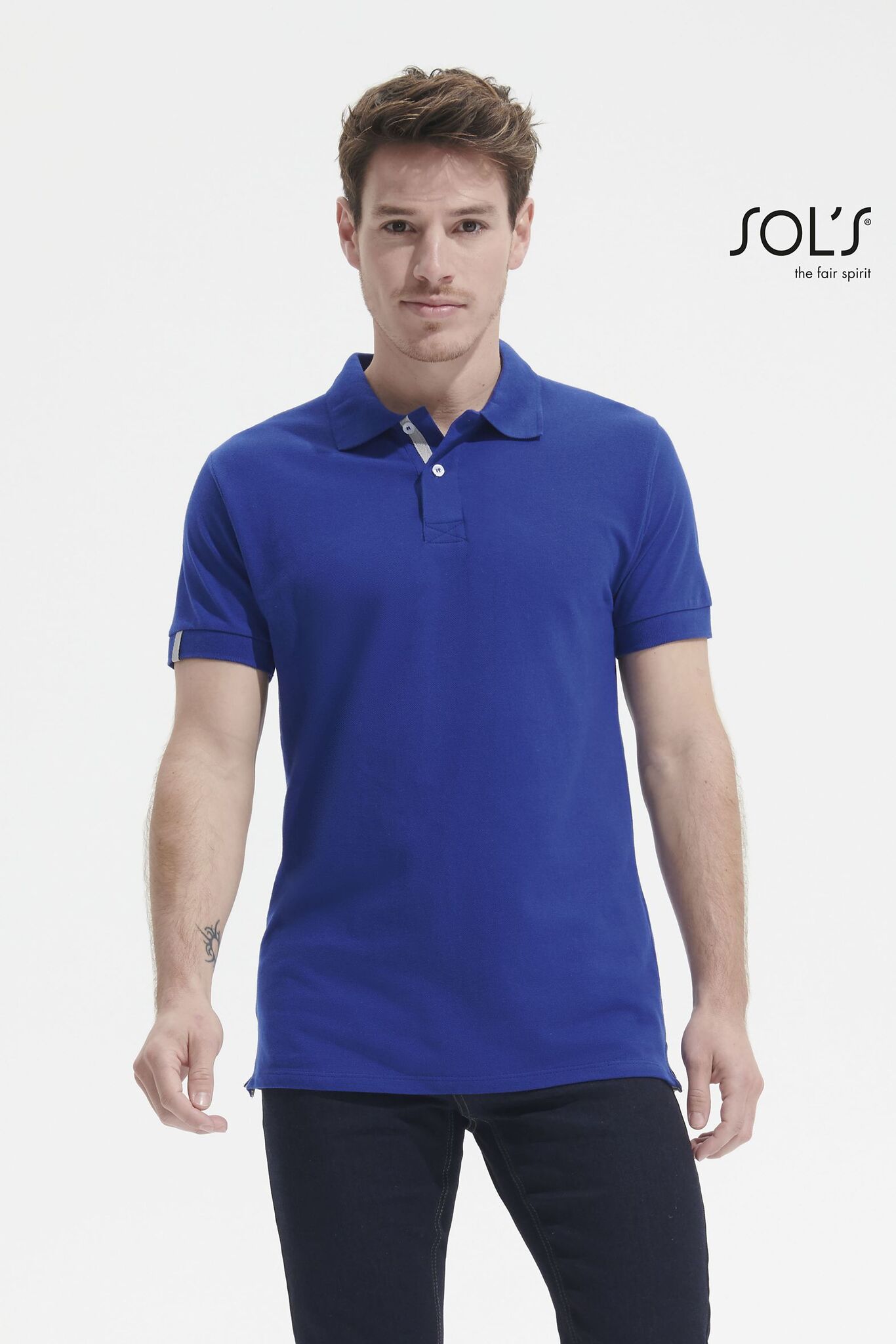 МУЖСКАЯ РУБАШКА ПОЛО С КОРОТКИМ РУКАВОМ. Ребристый воротник и манжеты; Контрастная подкладка на воротнике; Короткие рукава; Планка на пуговицах с 2 жемчужно-белыми пуговицами; Контрастная серая саржевая полоса на вырезе, пуговицах, боковых разрезах + бирка внизу рукава; Сшитый разрез; Облегающий крой; Запасная пуговица на внутреннем боковом шве