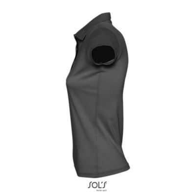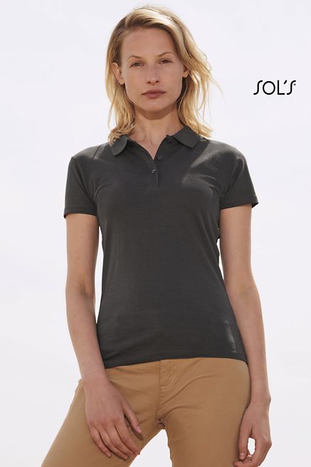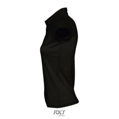 РУБАШКА ПОЛО ЖЕНСКАЯ. Полоса на воротнике; Ребристый воротник; Короткие рукава; Однотонная распашонка с тремя пуговицами; Вшитый разрез; Запасная пуговица на внутреннем боковом шве