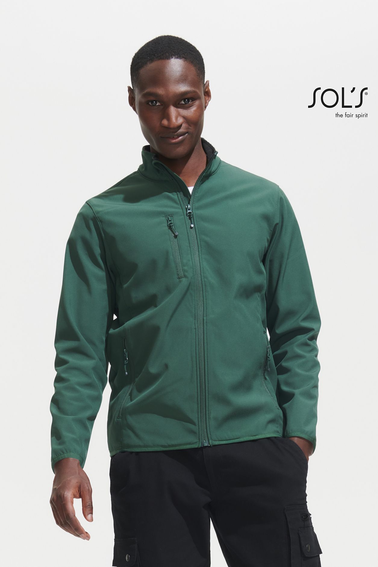 МУЖСКАЯ КУРТКА НА МОЛНИИ СОФТШЕЛЛ. Застежка-молния; 2 боковых и 1 нагрудный карман на молнии; Манжеты и низ куртки отделаны эластичной косой бейкой в цвет изделия