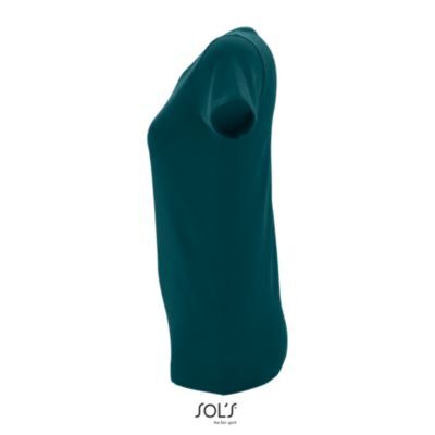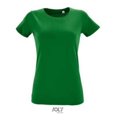 ЖЕНСКАЯ ФУТБОЛКА ПРИТАЛЕННОГО КРОЯ С КРУГЛЫМ ВЫРЕЗОМ. Круглый вырез отделан резинкой; Короткий рукав; Кроеный трикотаж; Укрепляющая тесьма по вороту