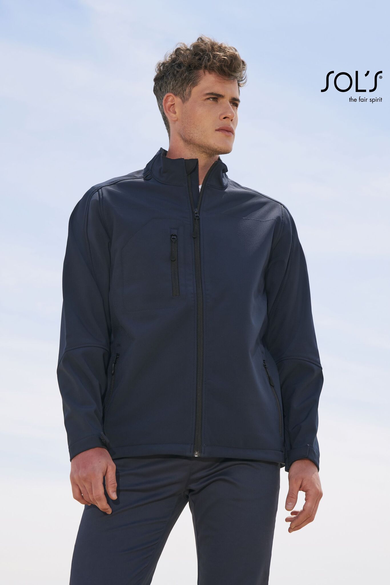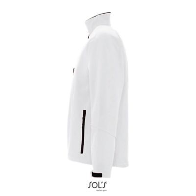 ЖАКЕТ МУЖСКОЙ ИЗ ТКАНИ СОФТШЕЛЛ С ЗАСТЕЖКОЙ-МОЛНИЕЙ. 2 боковых кармана с застежкой-молнией;; 1 нагрудный карман; регулируемый стягивающий шнур на талии;; регулируемые с помощью липучек манжеты.