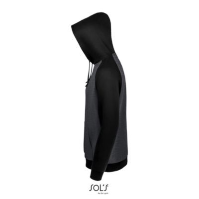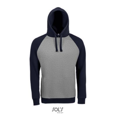 ДВУХЦВЕТНЫЙ СВИТШОТ УНИСЕКС. Двухцветный; Рукава реглан; Карман "кенгуру"; Манжеты и низ изделия в резинку; Капюшон на подкладке со стягивающим шнурком; Укрепляющая тесьма по вороту; Кроеный трикотаж