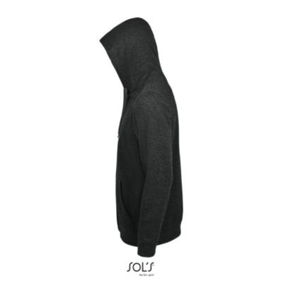 МУЖСКАЯ МОДЕЛЬ С КАПЮШОНОМ, ВНУТРЕННЯЯ СТОРОНА ИЗ МОЛЬТОНА С НАЧЕСОМ. Подол и манжеты из эластана; Облегающие рукава; 2 кармана кенгуру; Капюшон с подкладкой и утягивающим шнурком тон в тон; Потайная молния; Прямой срез; Прошитый срез