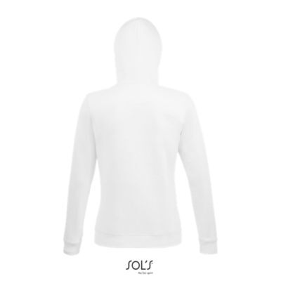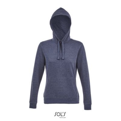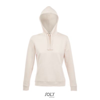 ЖЕНСКИЙ СВИТШОТ С КАПЮШОНОМ. Карман "кенгуру"; Кроеный трикотаж; Капюшон на подкладке со стягивающим шнурком; Манжеты и низ изделия в резинку 2х2; Нашитый полукруг с внутренней стороны выреза; Укрепляющая тесьма по вороту