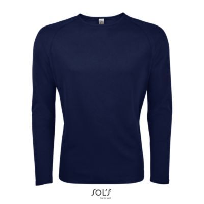 МУЖСКАЯ СПОРТИВНАЯ ФУТБОЛКА С ДЛИННЫМ РУКАВОМ. Круглый вырез; Кроеный трикотаж; Горловина обработана бейкой