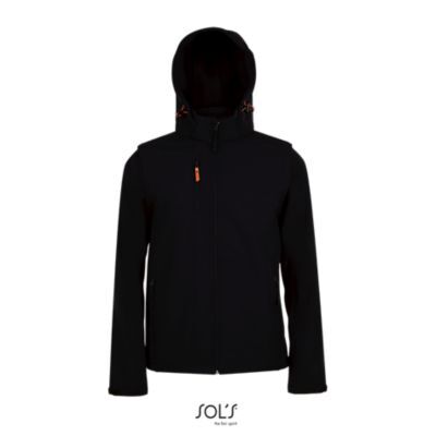 КУРТКА СОФТШЕЛЛ СО СЪЕМНЫМИ РУКАВАМИ И КАПЮШОНОМ. Унисекс; Застежка-молния; 3 кармана на молнии; Съемные рукава и капюшон с козырьком; Завязки на капюшоне и по низу одежды