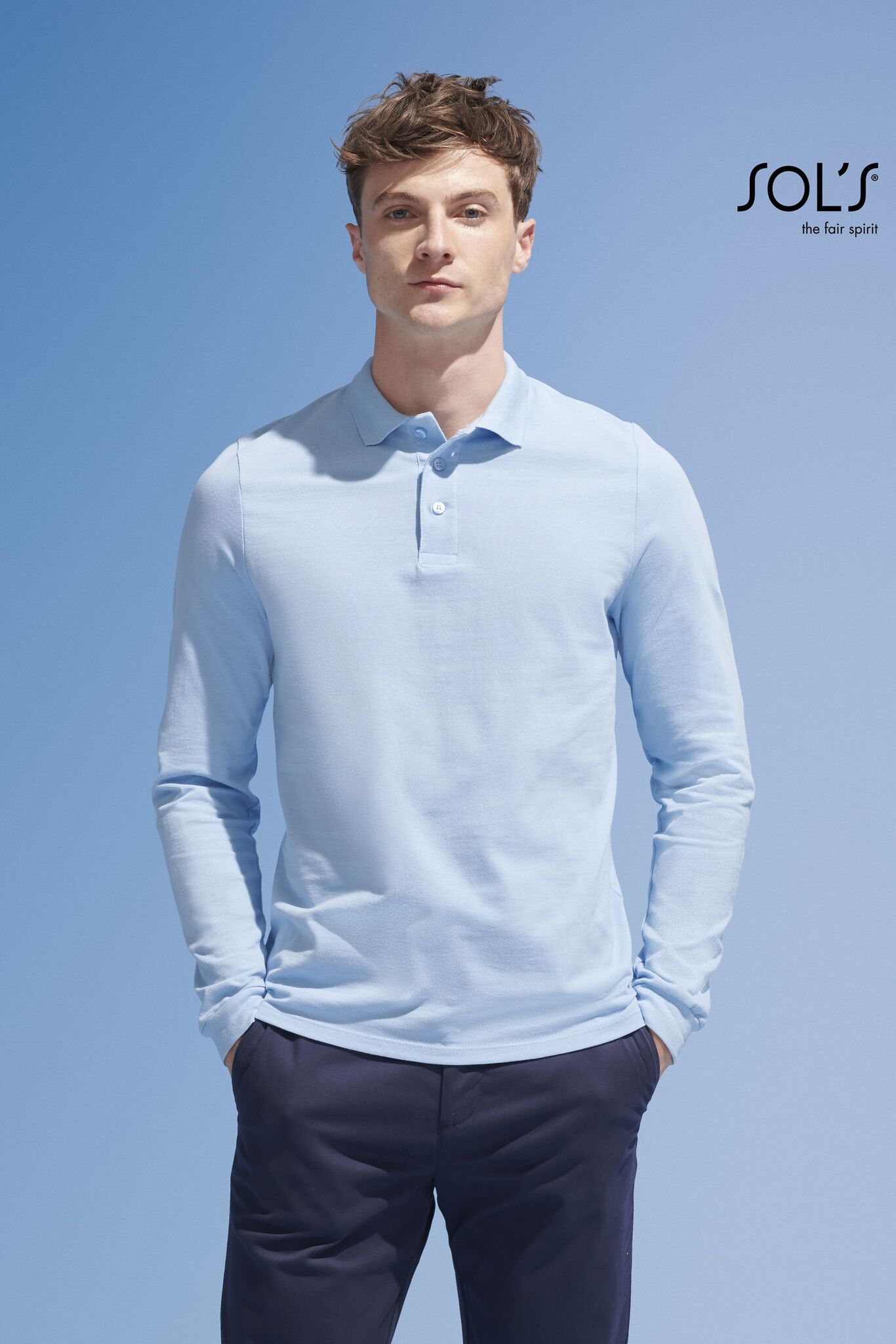РУБАШКА ПОЛО МУЖСКАЯ С ДЛИННЫМ РУКАВОМ. Ребристый воротник и манжеты; Подкладка на воротнике; Усиленный воротник на пуговицах; Длинные рукава; Однотонная распашонка с тремя пуговицами; Прямой низ с боковыми разрезами; Вшитый разрез; Запасная пуговица на внутреннем боковом шве