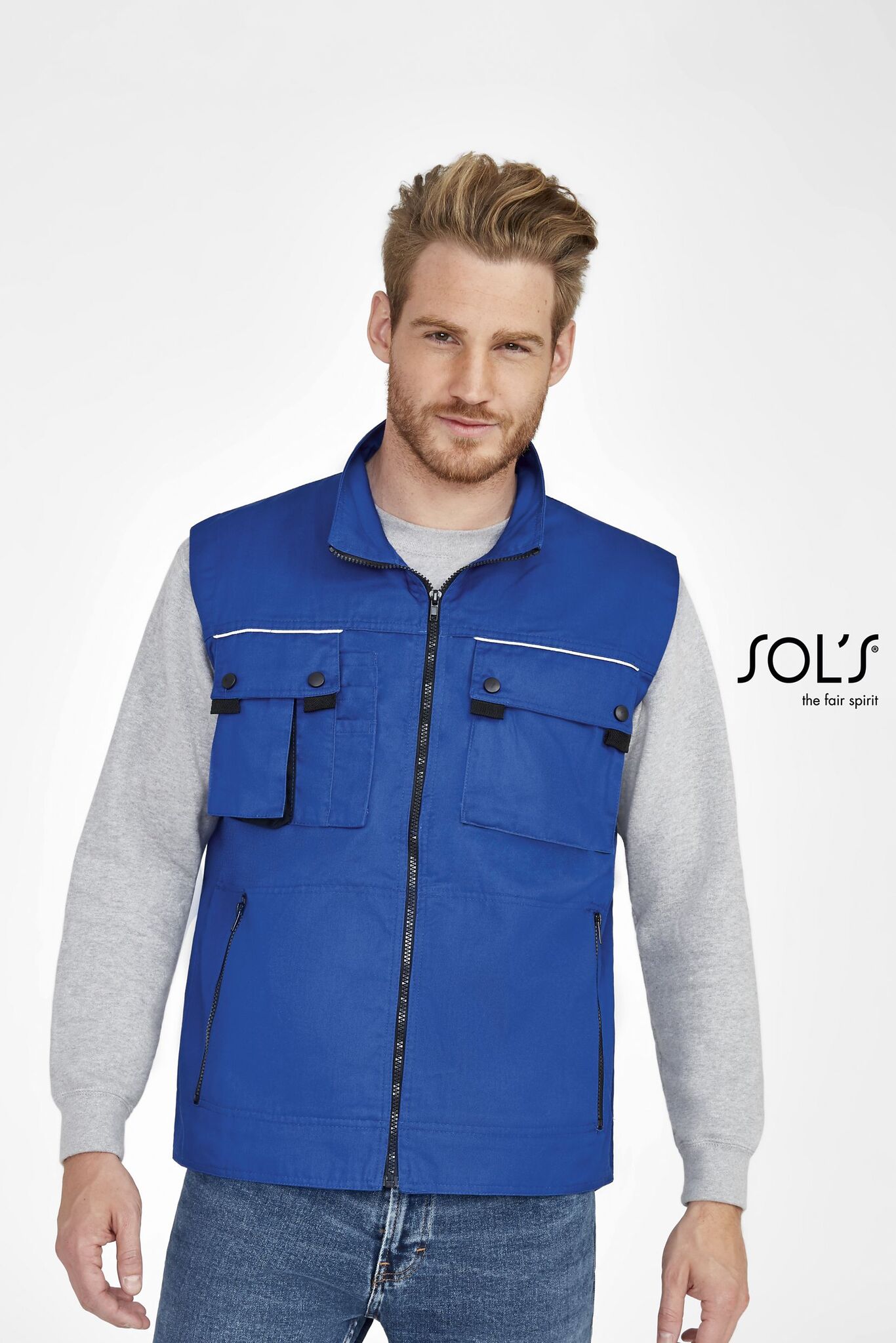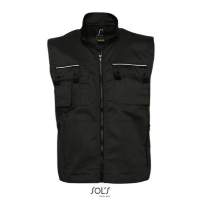 ЖИЛЕТ РАБОЧИЙ БЕЗ ПОДКЛАДКИ. 6 карманов, включая внутренний карман и карман для мобильного телефона; клапаны на карманах со светоотражающими лампасами; 3 вставки для ношения авторучек; застежка на молнии черного цвета;; специальная этикетка для указания персональных данных, вышитая внутри