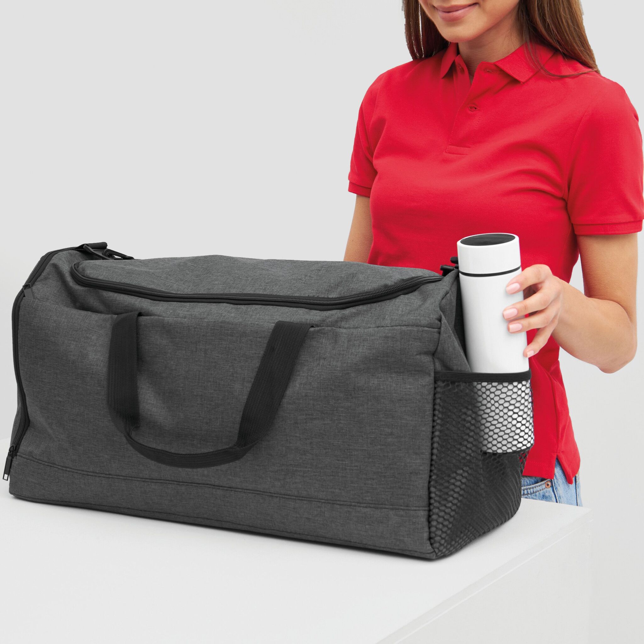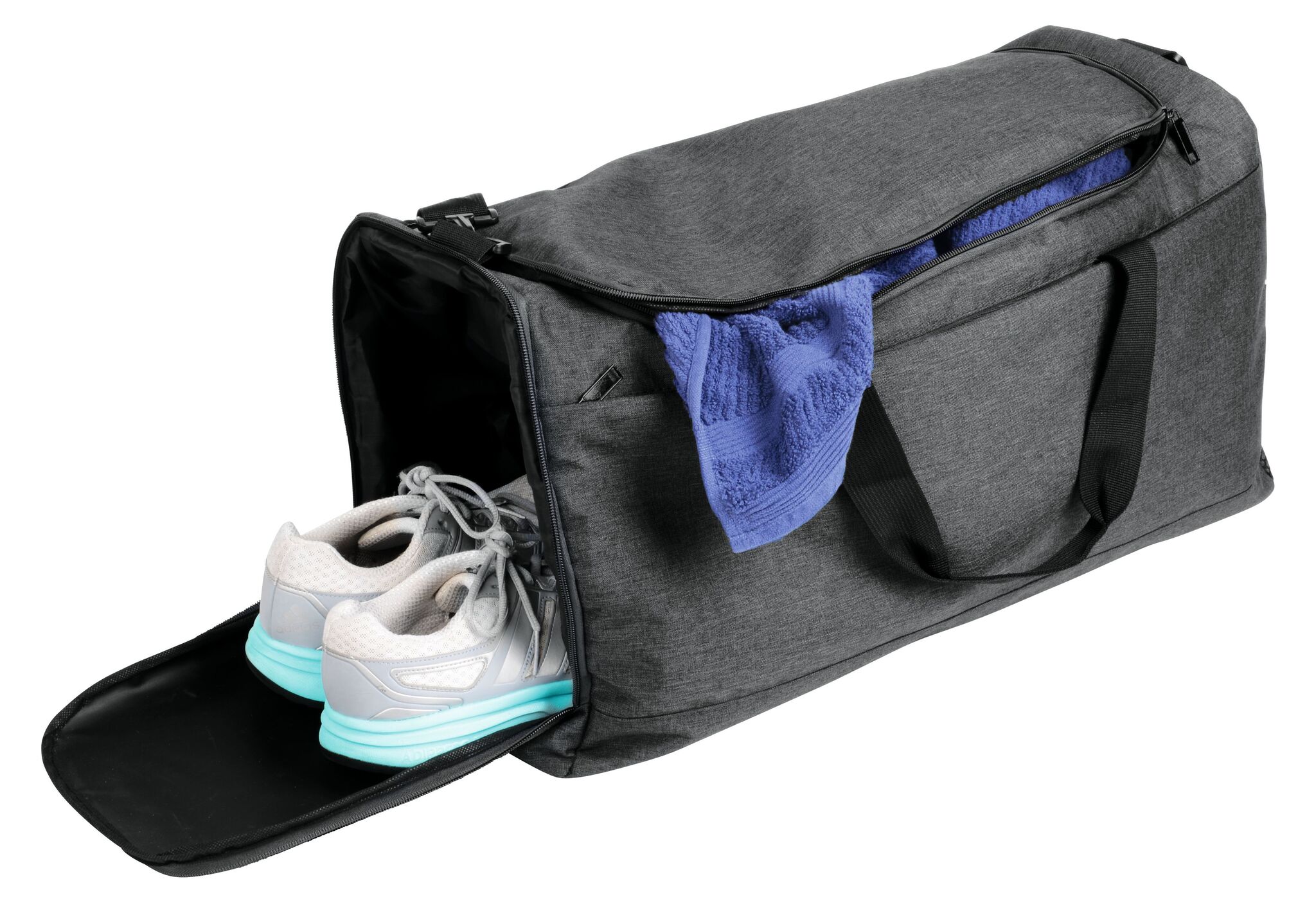 Спортивная сумка LEISURE , с боковым отделением для обуви: просторное основное отделение на молнии, передний карман на молнии, боковой сетчатый карман, регулируемый и съемный наплечный ремень с мягкой прокладкой, укреплённые ручки