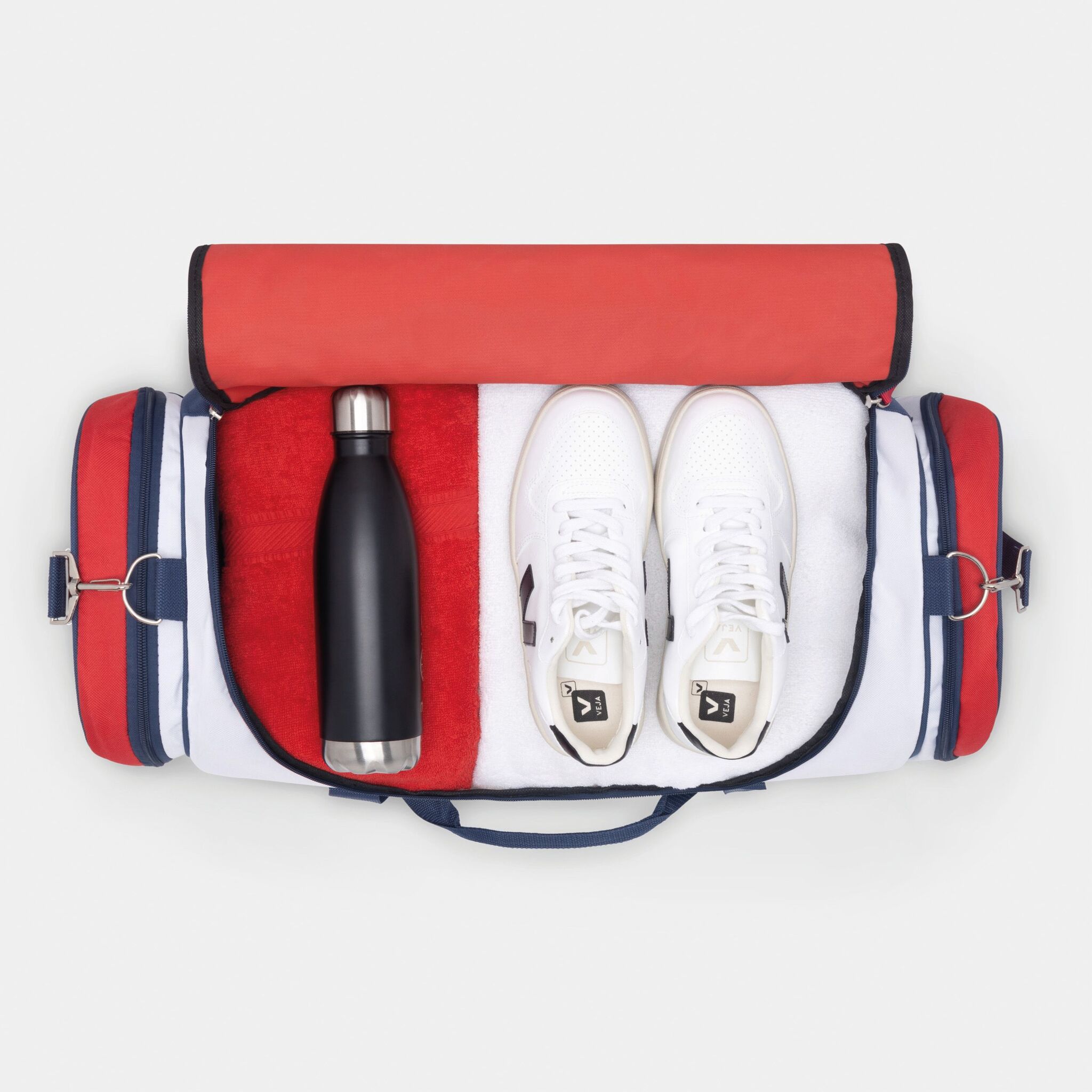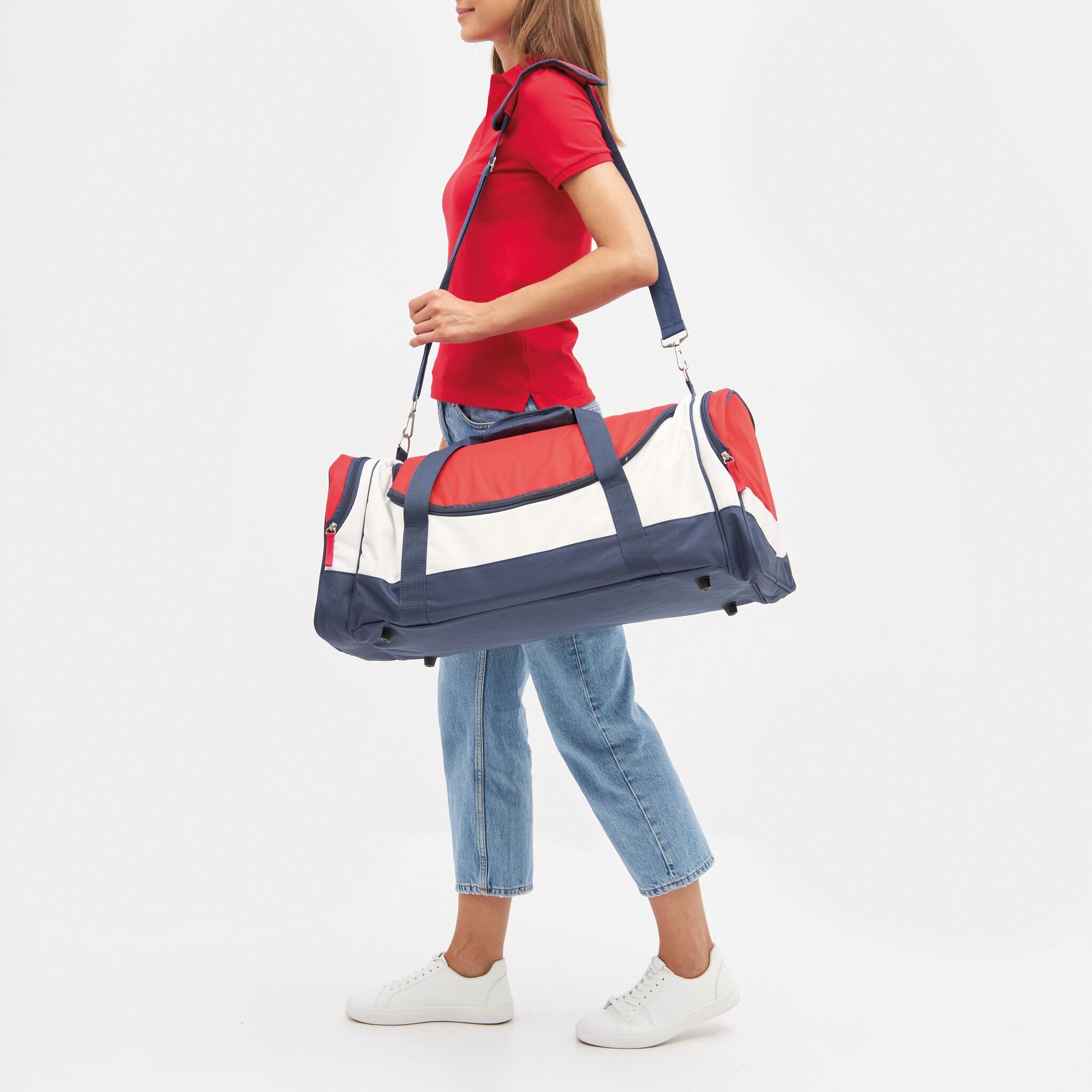 Спортивная сумка MARINA GYM : основное отделение на молнии, два боковых отделения на молнии, уплотнённые ручки, съёмая лямка с регулируемой длиной