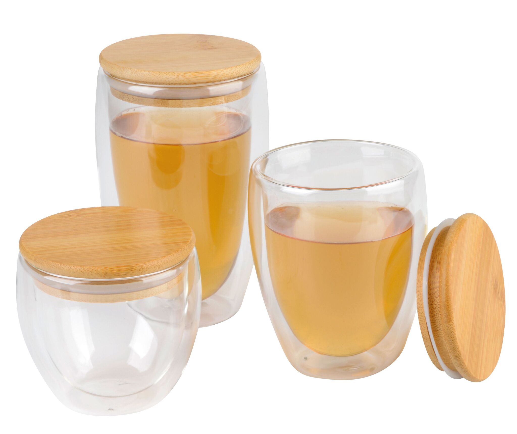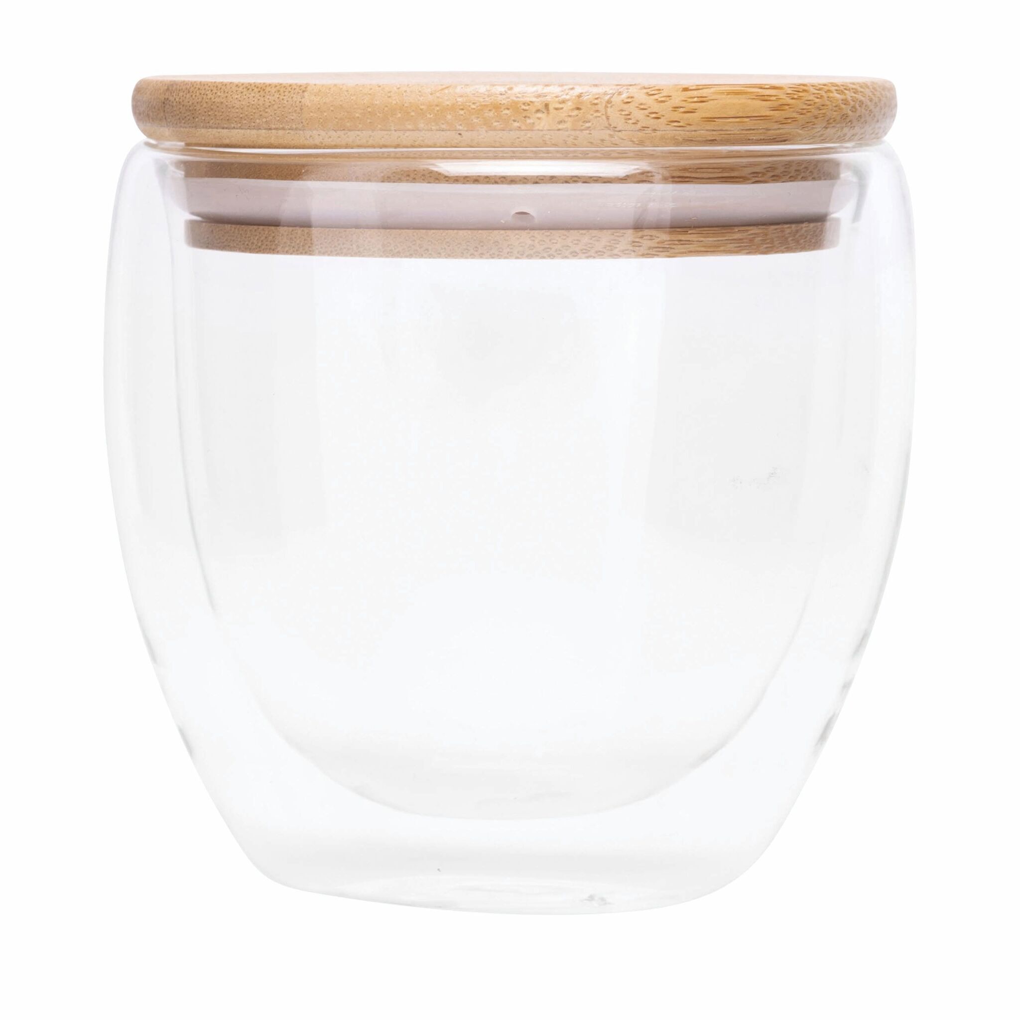 Стакан с двойными стенками BAMBOO ART S , с бамбуковой крышкой, прозрачный, термостойкий, объем ок. 250 ml