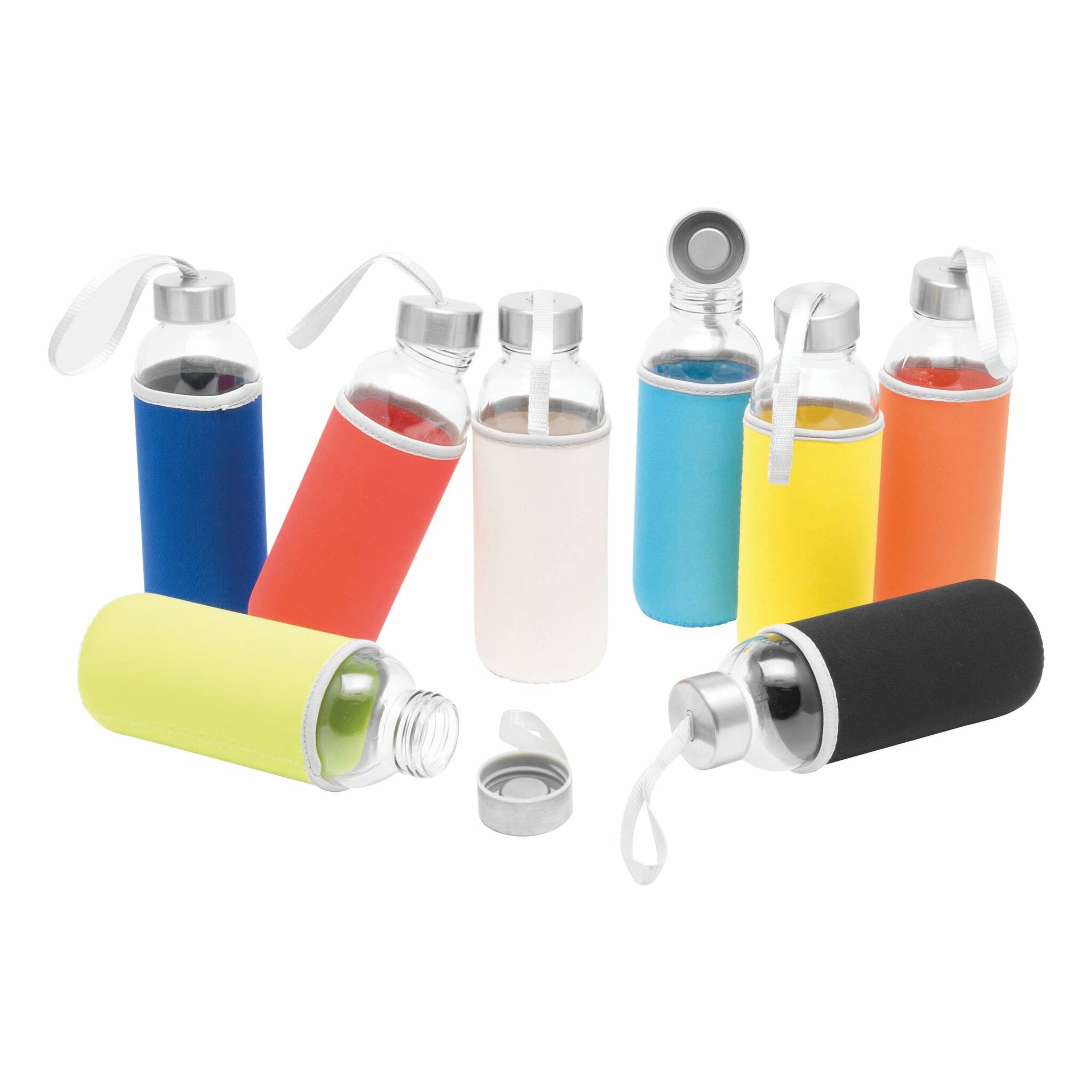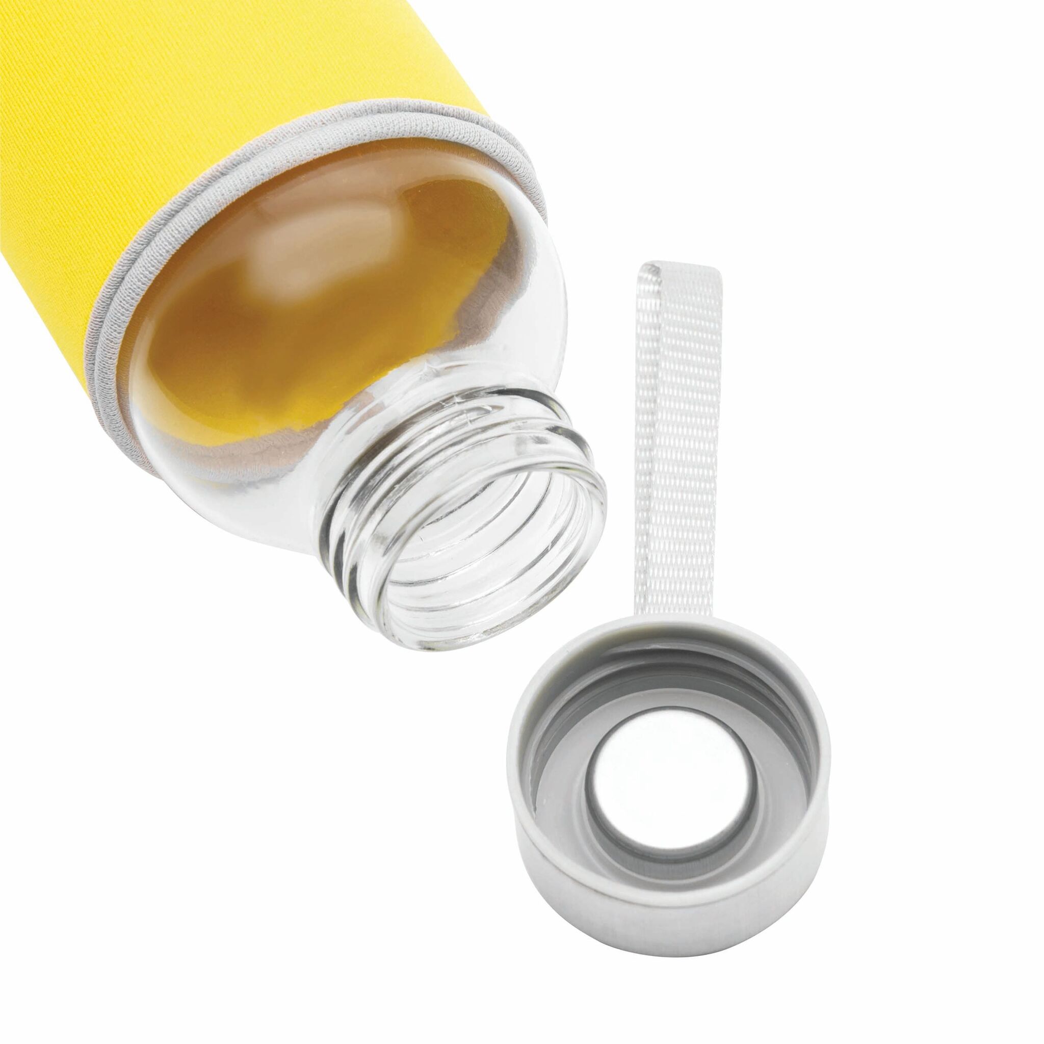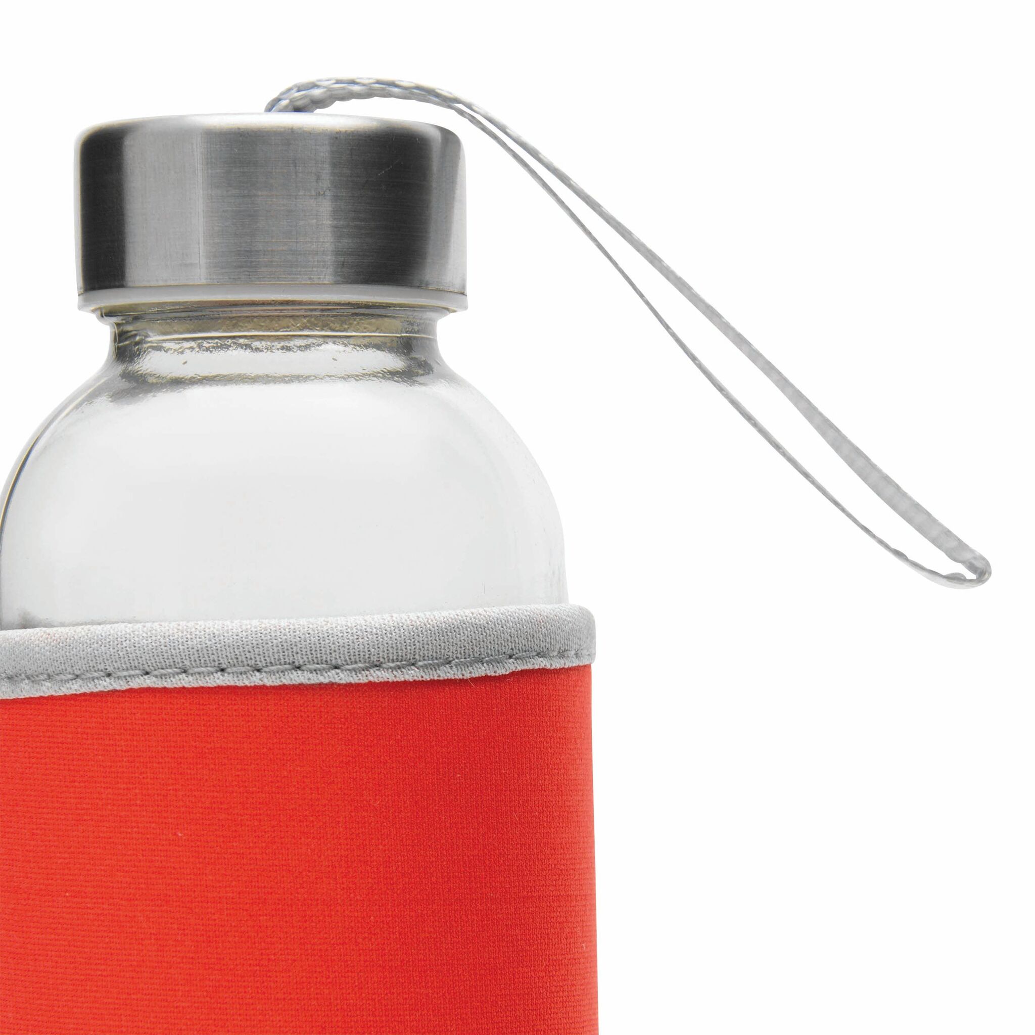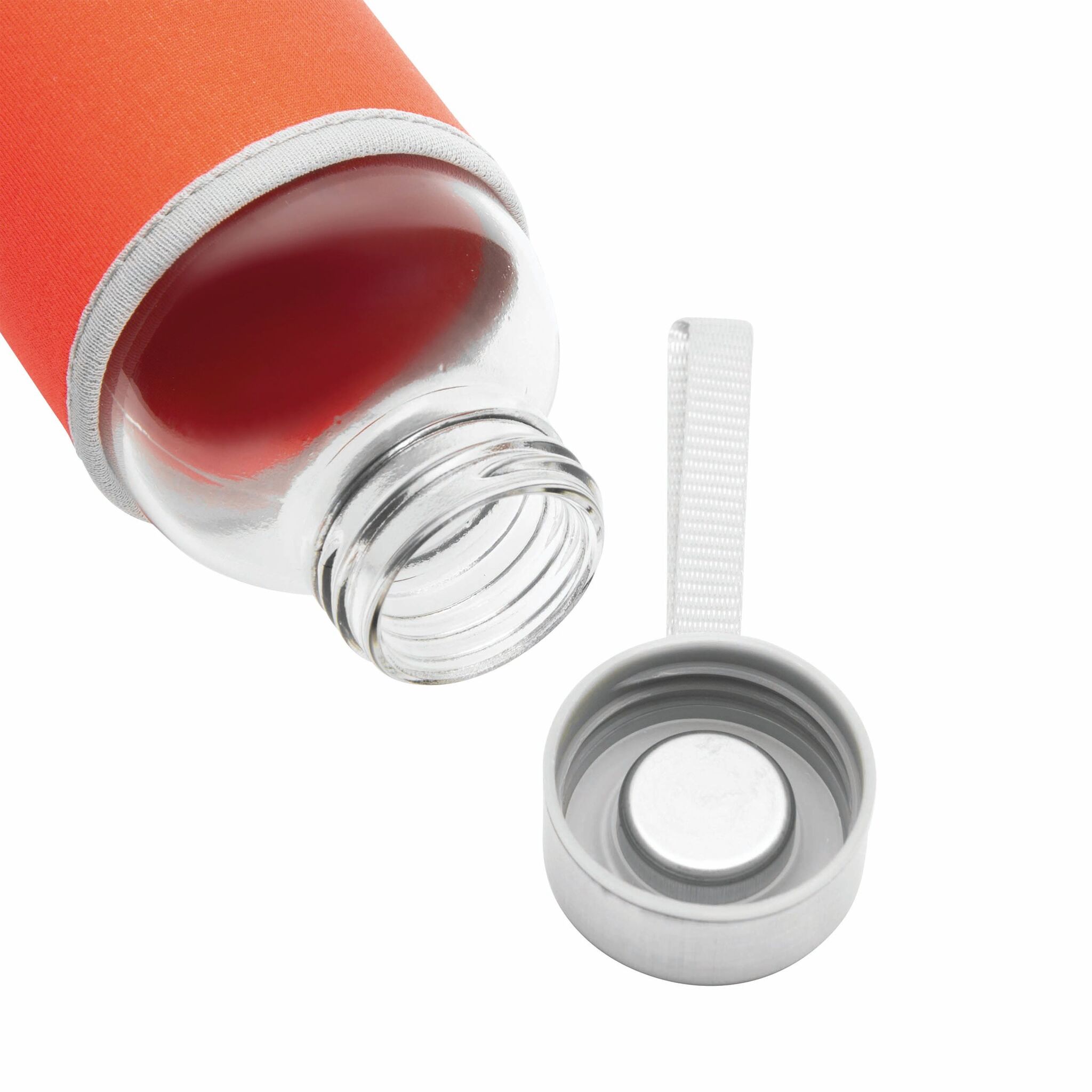 Стеклянная бутылка TAKE WELL : закручивающаяся крышка, петля для переноски, цветной защитный чехол, объем ок. 450 мл