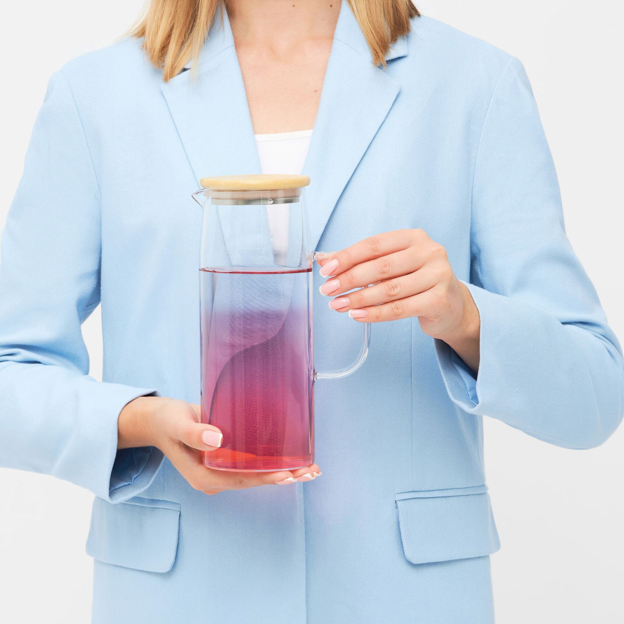 Стеклянный графин BAMBOO PITCHER : с ручкой, воздухонепроницаемой бамбуковой крышкой, слой нержавеющей стали на дне крышки, емкость: ок. 1.200 мл