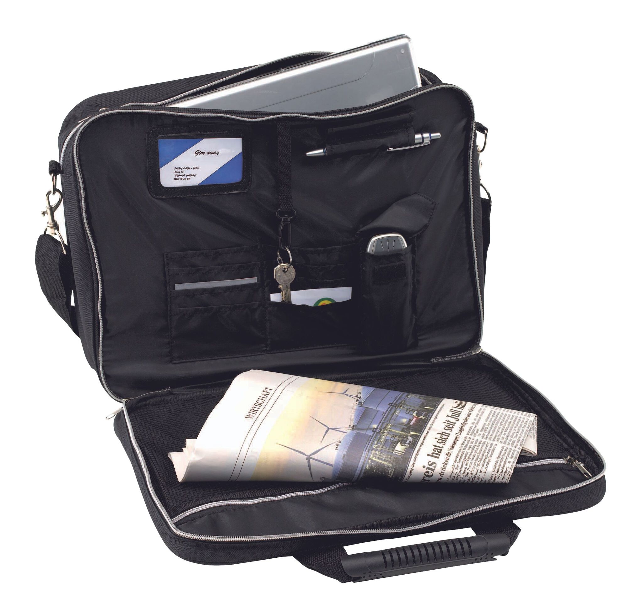 Сумка для ноутбука MEETING основное отделение на молнии с внутренним отделением для ноутбука, стенки которого с мягкой прокладкой, второе отделение на молнии с органайзером, передний карман на молнии, задний карман на липучке (с прозрачным окошком под визитку) с молнией в нижней части для возможности надевать сумку на ручку чемодана